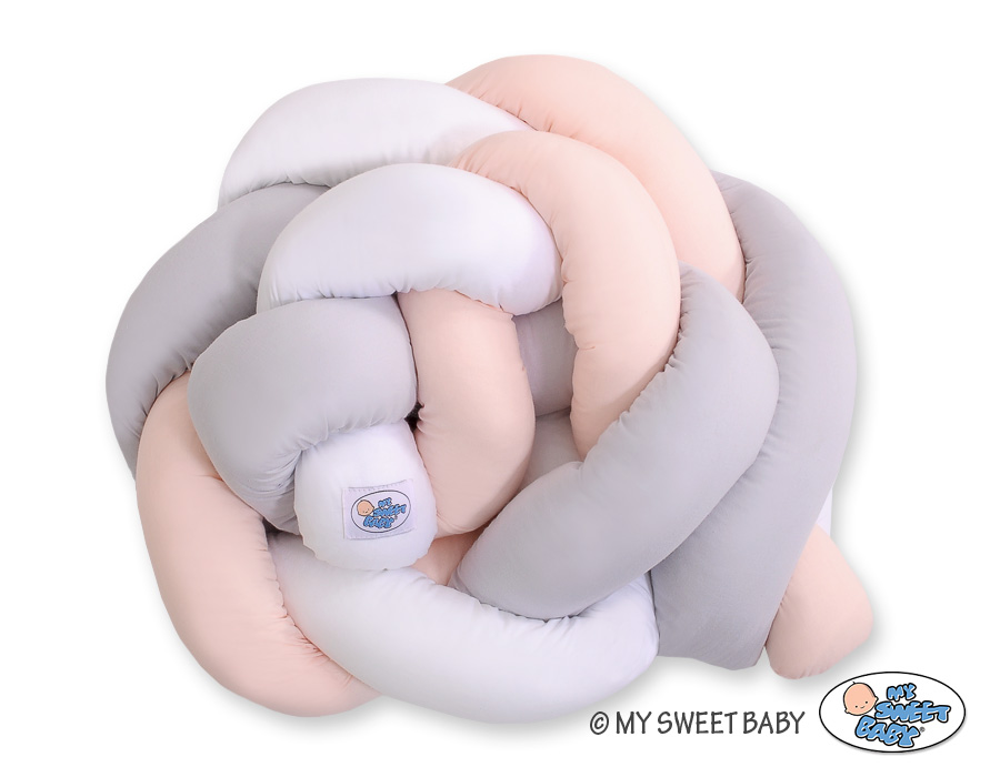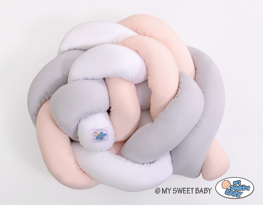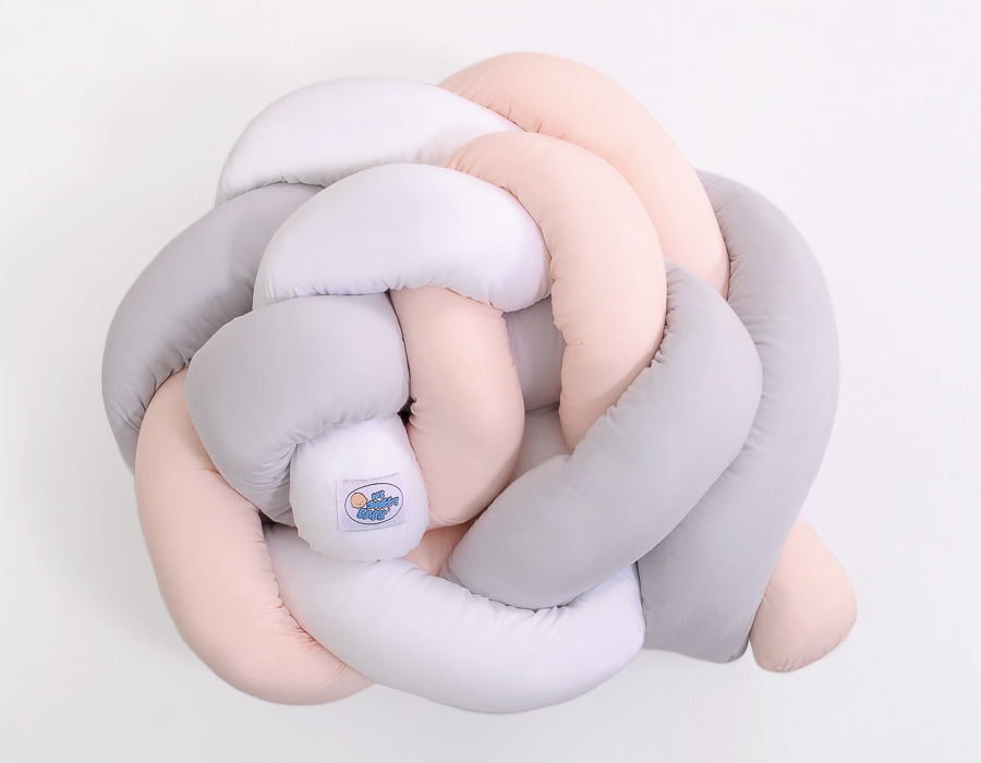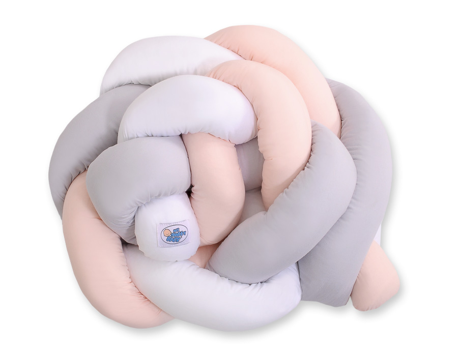 Geflochtene Bettschlange für Babybett - weiß-grau-pudderrosapink