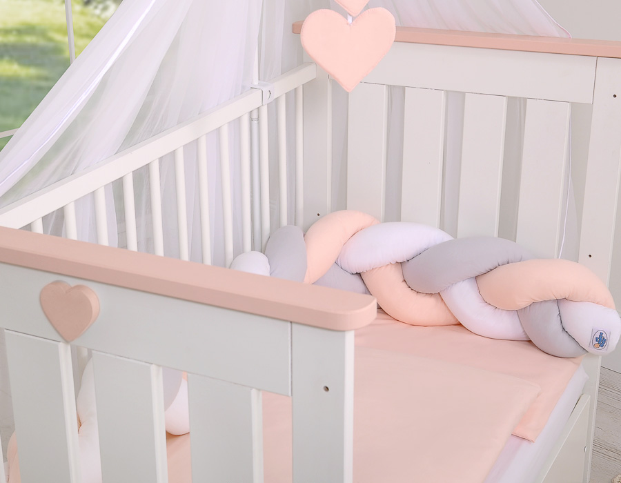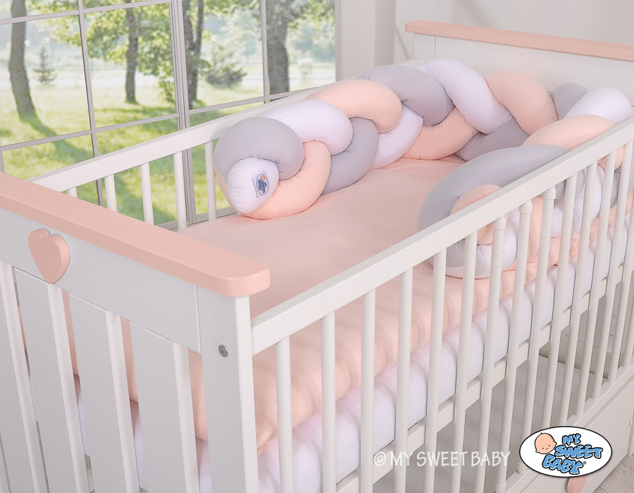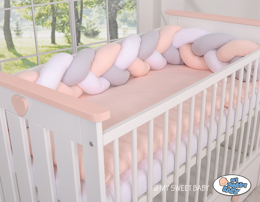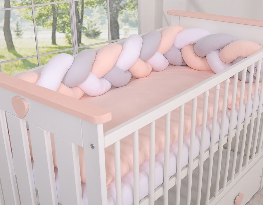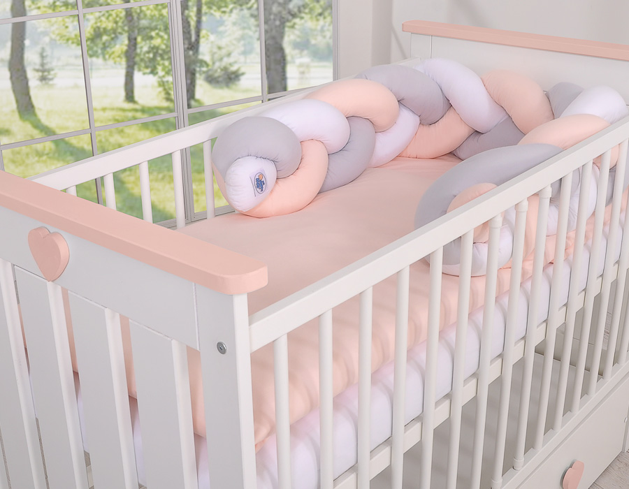 Weiß-grau-pudderrosapink Babybett Bettschlange Geflochtene