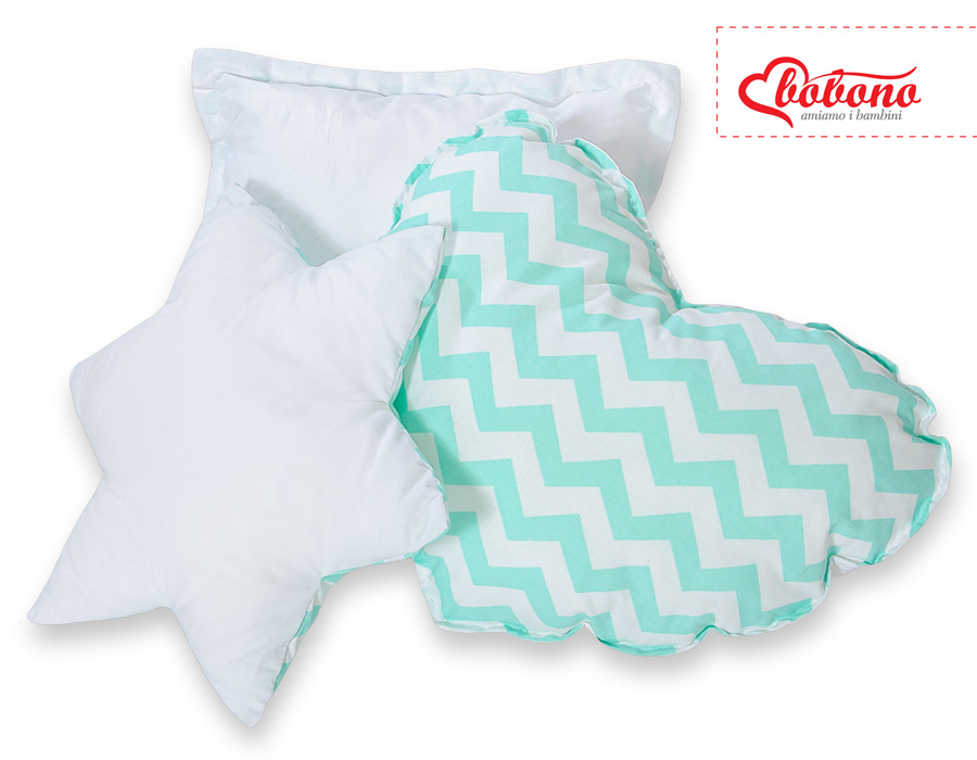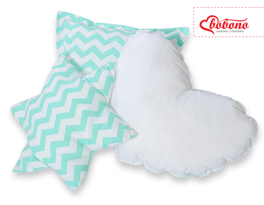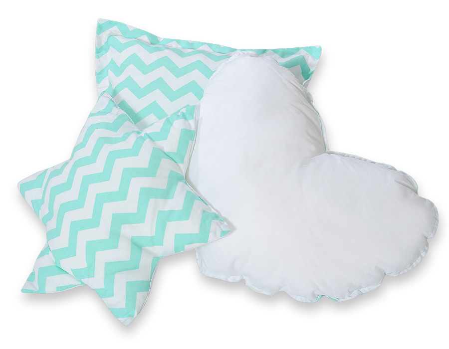 Stubenwagen » Spielzeug Kuscheltiere » Teepee Kinderspiel-Zelt » 3tlg Kissen-Set » 3tlg Kissen-Set - Chevron minze