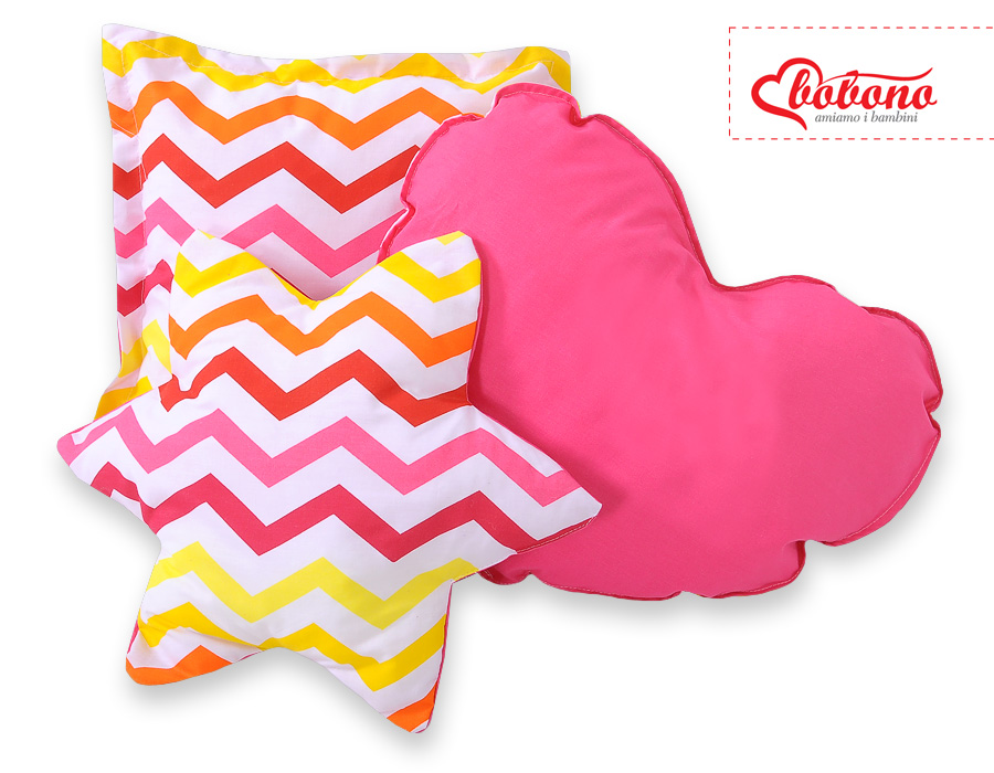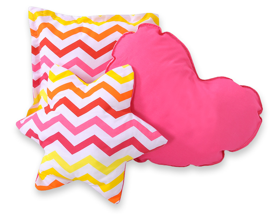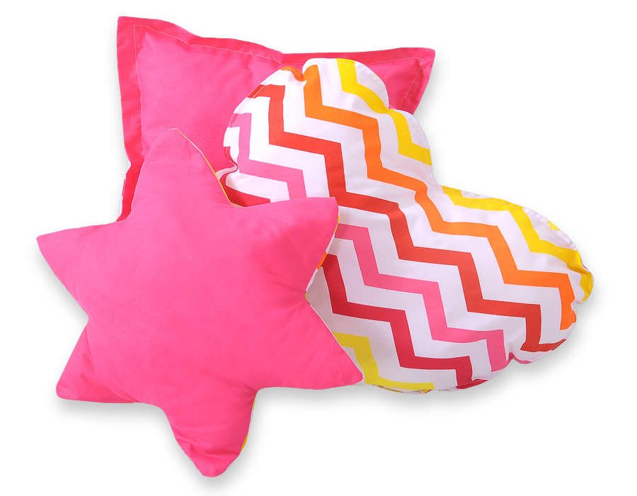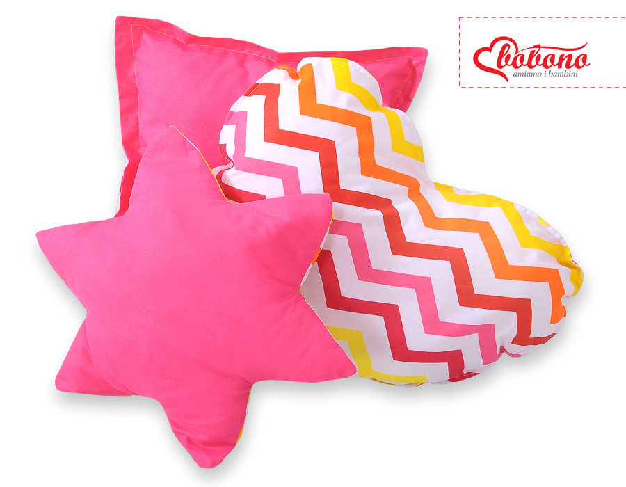 Stubenwagen » Spielzeug Kuscheltiere » Teepee Kinderspiel-Zelt » 3tlg Kissen-Set » 3tlg Kissen-Set - Chevron rosa-gelb