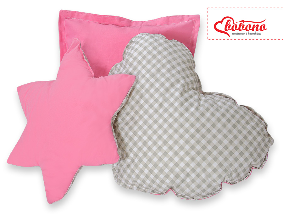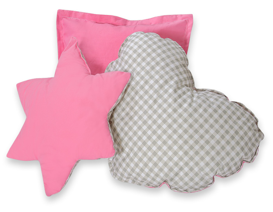 Stubenwagen » Spielzeug Kuscheltiere » Teepee Kinderspiel-Zelt » 3tlg Kissen-Set » 3tlg Kissen-Set - Grau kariert - Rosa
