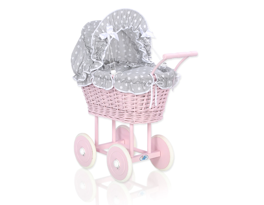 Eine wunderbare Geschenkidee für alle kleinen Mädchen. Sowohl der Korb aus Weide, als auch das Holzuntergestell entstehen in Handarbeit. Die Retropuppenwagen sind in vielen wunderschönen Farben verfügbar. Die sanften Pastelltöne des Puppenwagens ergeben eine wunderschöne Kombination mit den verschiedenen Farben der Bezüge. Dadurch sind unsere Puppenwagen wunderschönes Spielzeug und ein richtiges Hingucker.