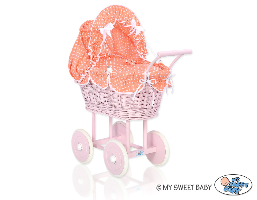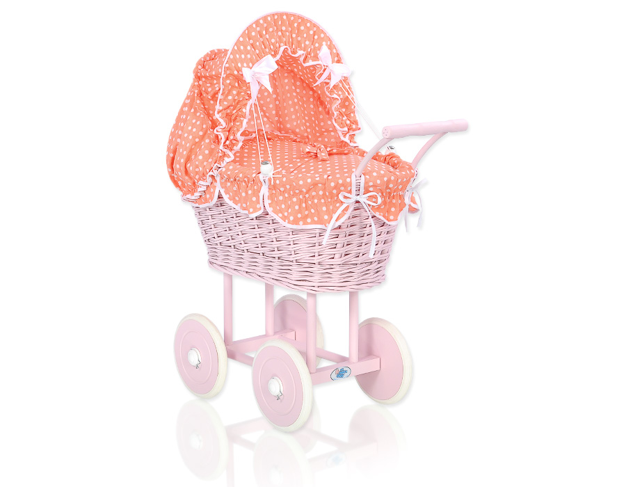 Stubenwagen » Spielzeug Kuscheltiere » Puppenwagen und Spielzeug » Puppenwagen aus Weide » Altrosa Vintage Puppenwagen Bettwäsche Pfirsich Punktmuster nr 81699-761