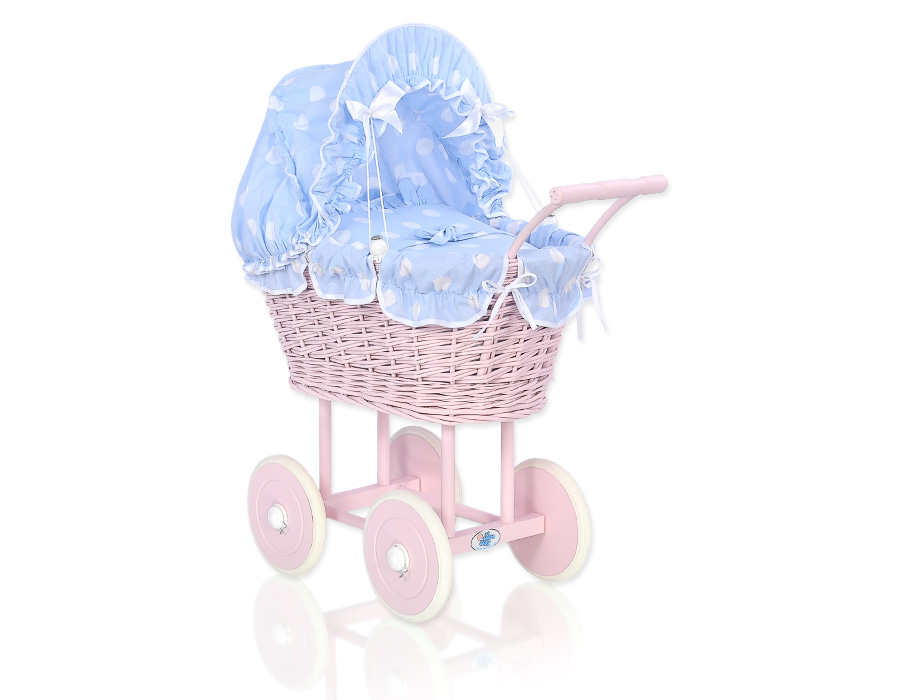 Eine wunderbare Geschenkidee für alle kleinen Mädchen. Sowohl der Korb aus Weide, als auch das Holzuntergestell entstehen in Handarbeit. Die Retropuppenwagen sind in vielen wunderschönen Farben verfügbar. Die sanften Pastelltöne des Puppenwagens ergeben eine wunderschöne Kombination mit den verschiedenen Farben der Bezüge. Dadurch sind unsere Puppenwagen wunderschönes Spielzeug und ein richtiges Hingucker.