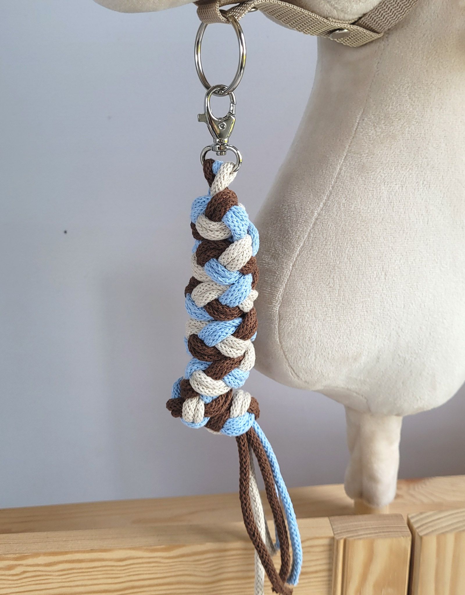 Anbindestrick für Steckenpferd aus doppelt geflochtener Kordel - blau/hellbeige/braunAnbindestrick für Steckenpferd aus doppelt geflochtener Kordel - blau/hellbeige/braun