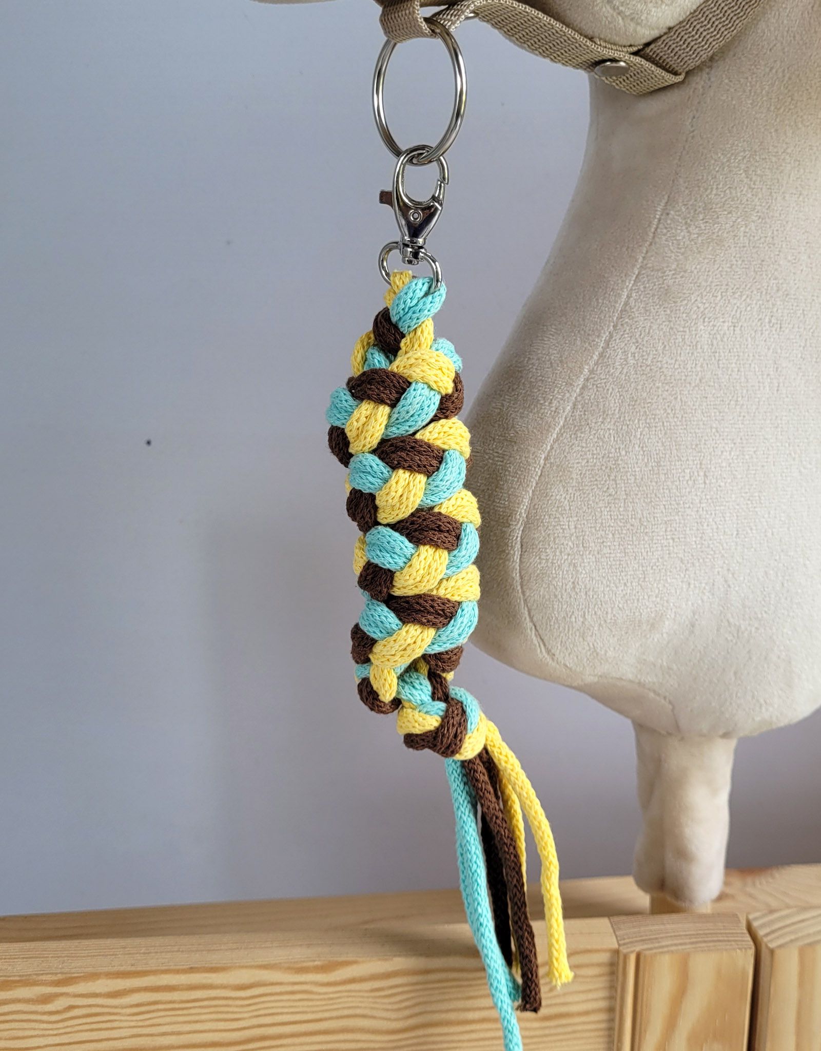 Anbindestrick für Steckenpferd aus doppelt geflochtener Kordel - gelb/mint/braun