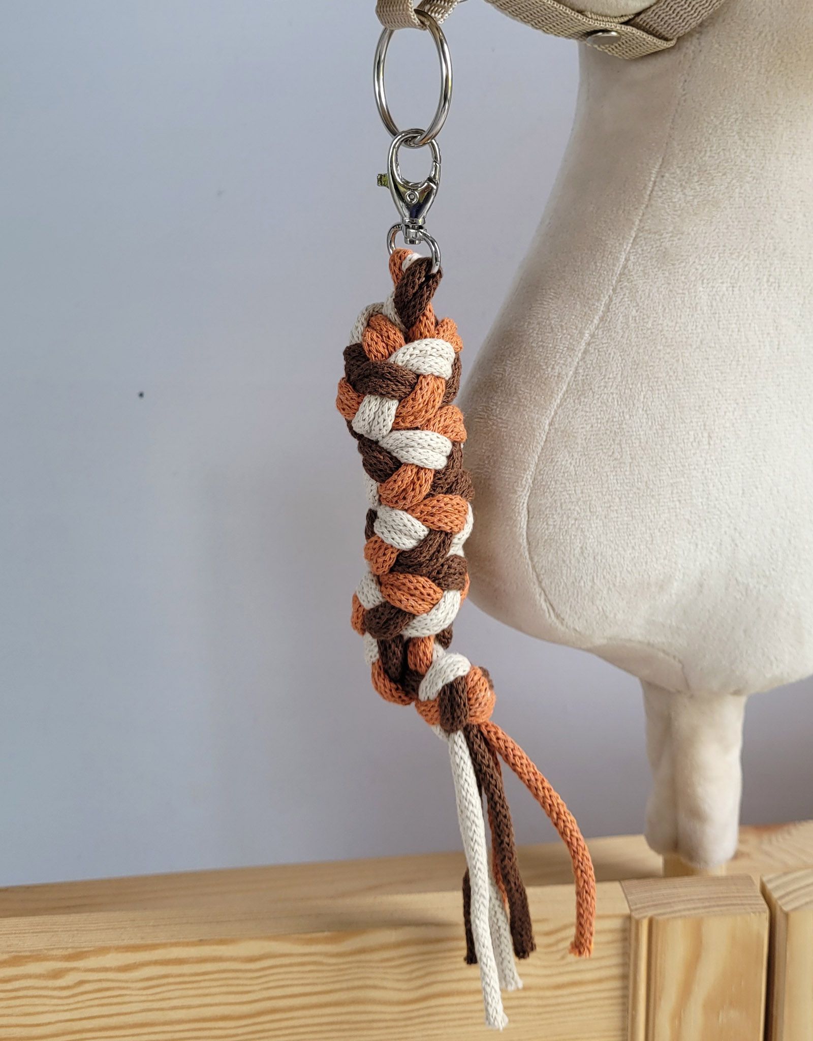 Anbindestrick für Steckenpferd aus doppelt geflochtener Kordel - hellbeige/braun/terracotta