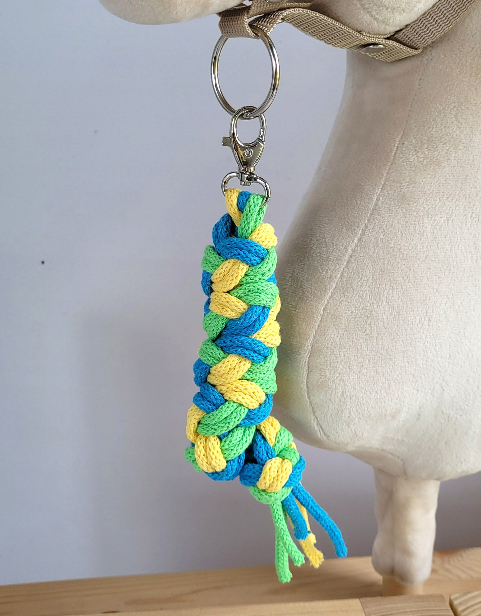 Anbindestrick für Steckenpferd aus doppelt geflochtener Kordel - hellgrün/ türkis/ gelb