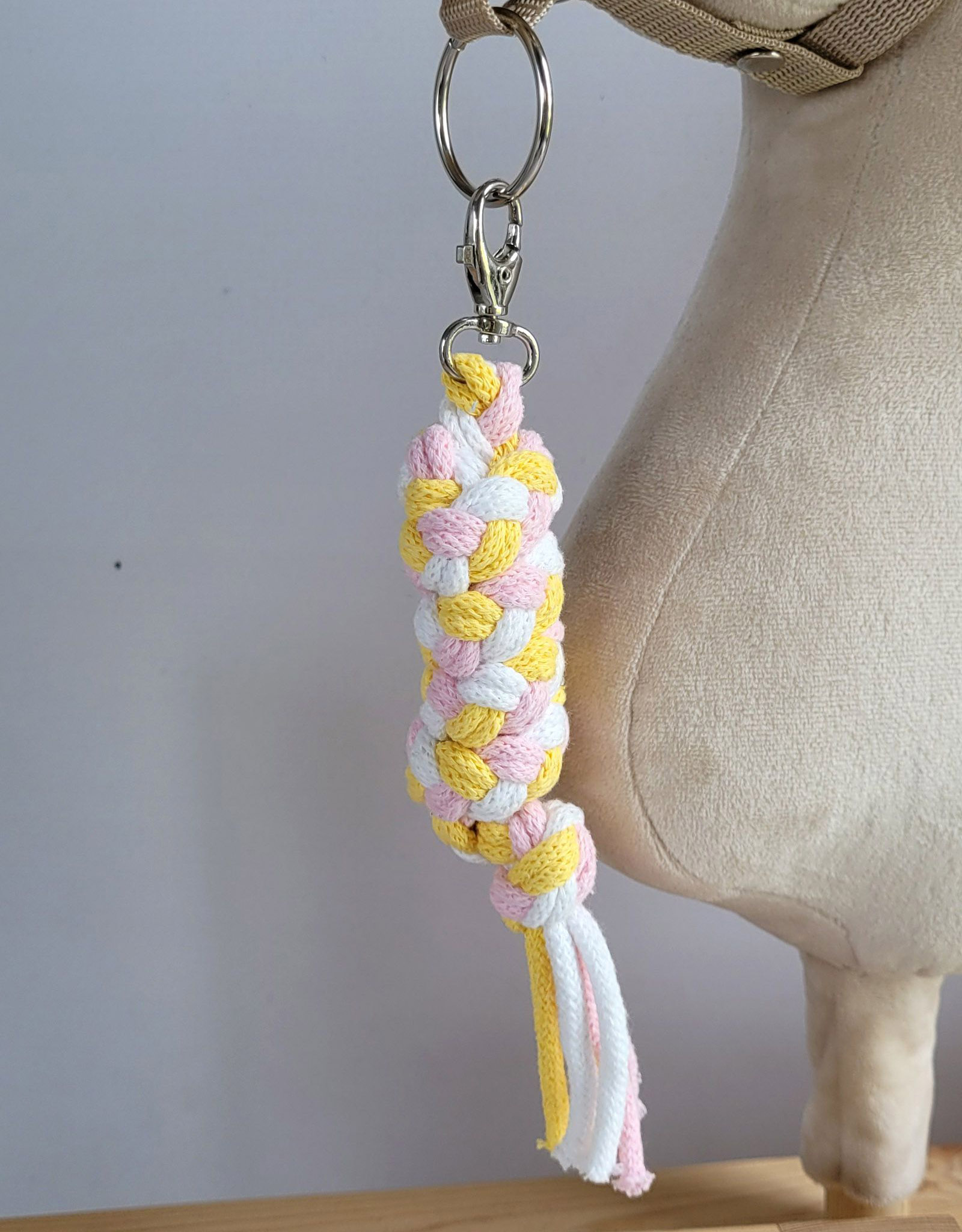 Anbindestrick für Steckenpferd aus doppelt geflochtener Kordel - hellrosa/gelb/weiß