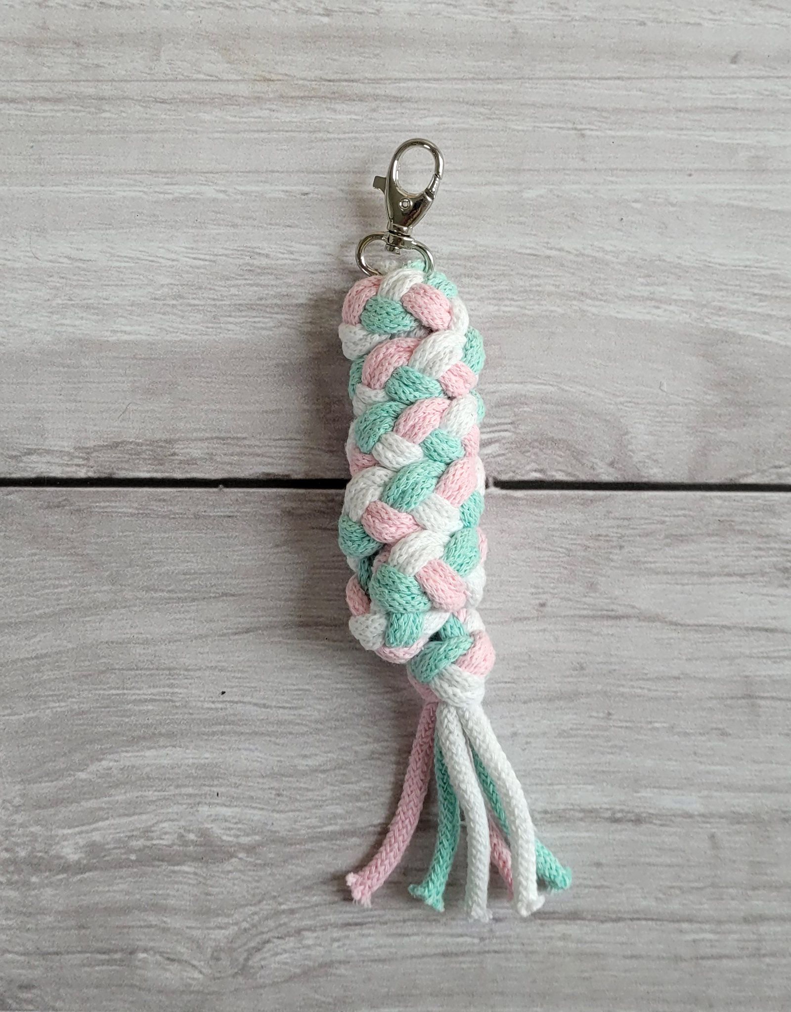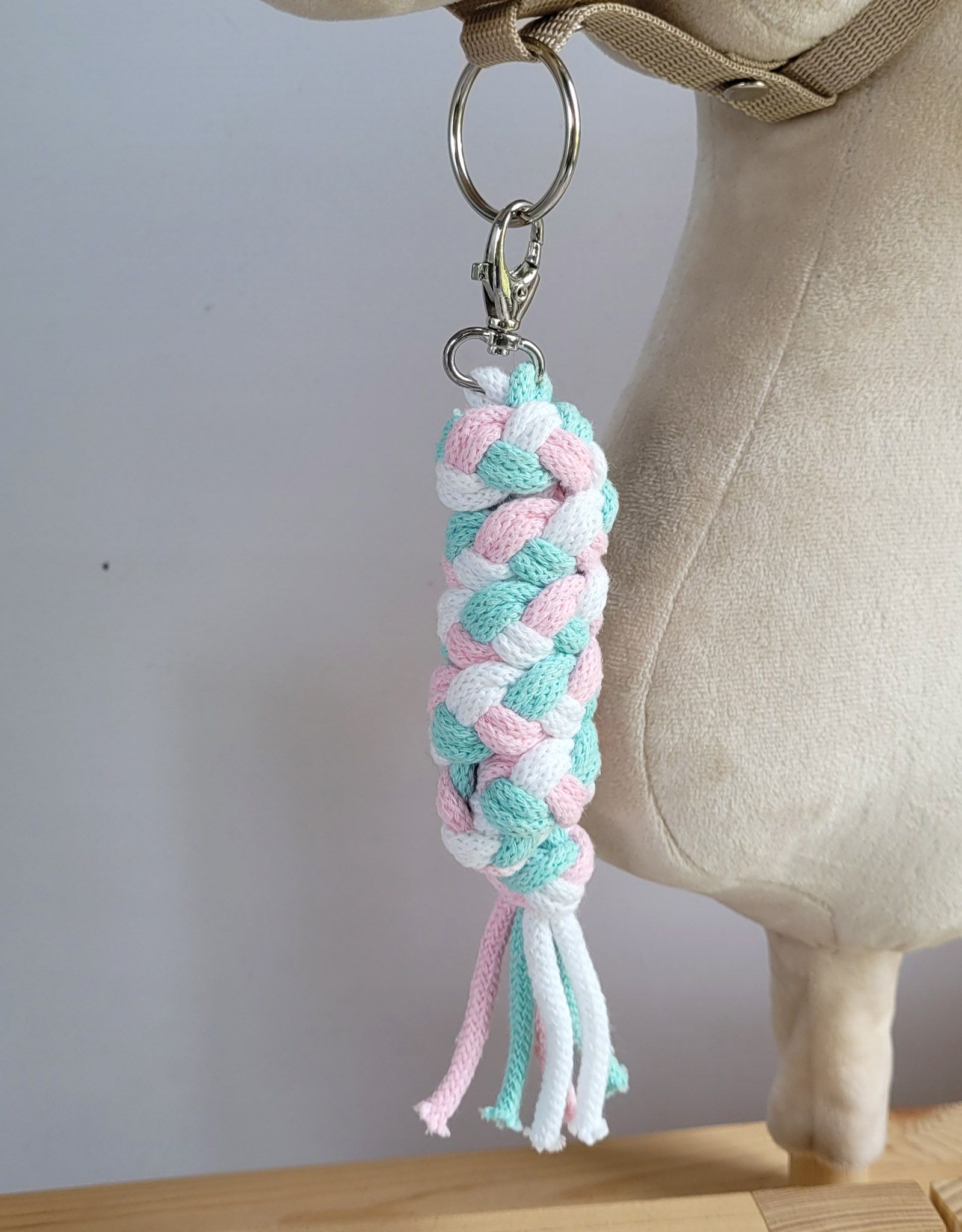 Anbindestrick für Steckenpferd aus doppelt geflochtener Kordel - hellrosa/mint/weiß