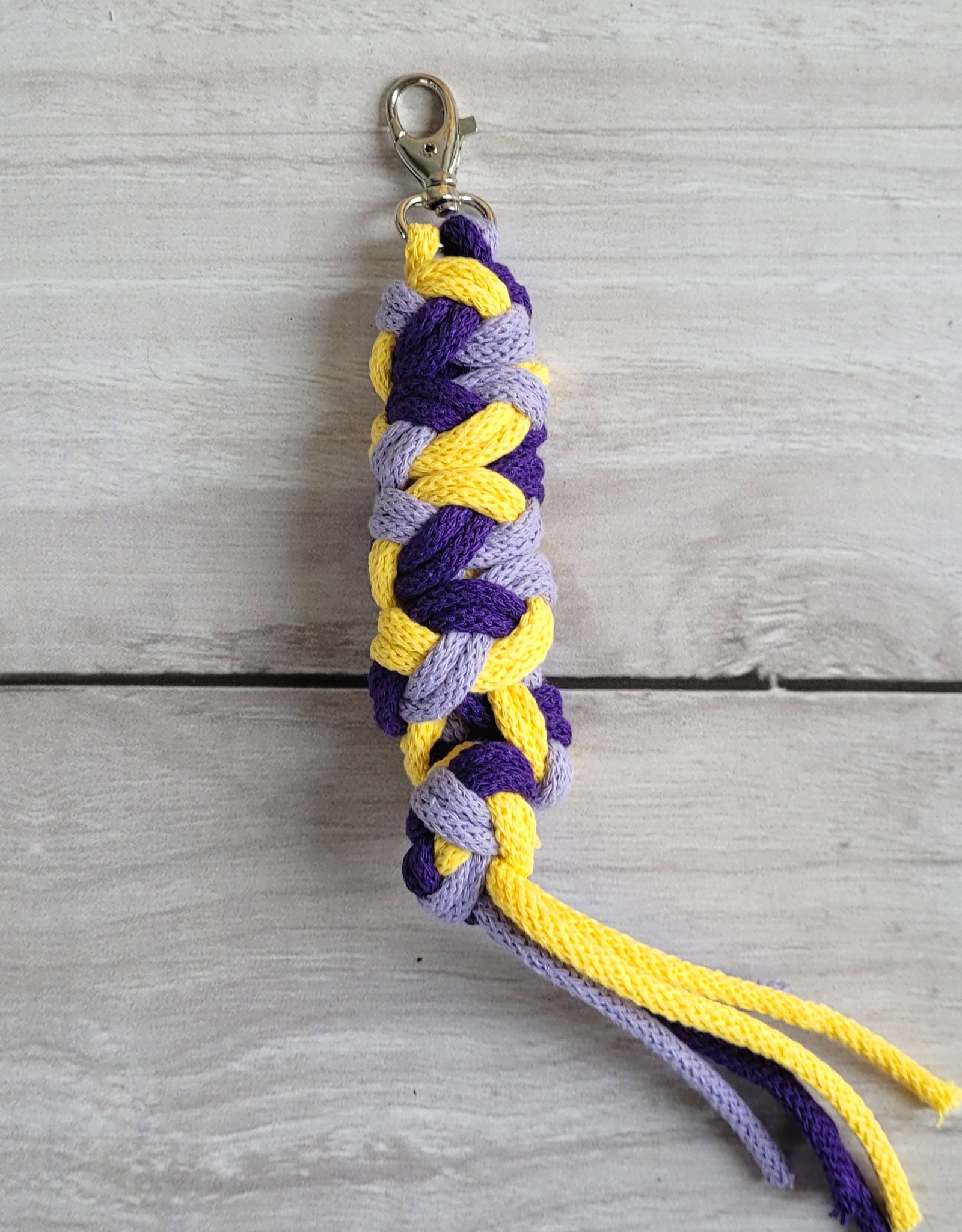 Anbindestrick für Steckenpferd aus doppelt geflochtener Kordel - lila/dunkellila/gelb