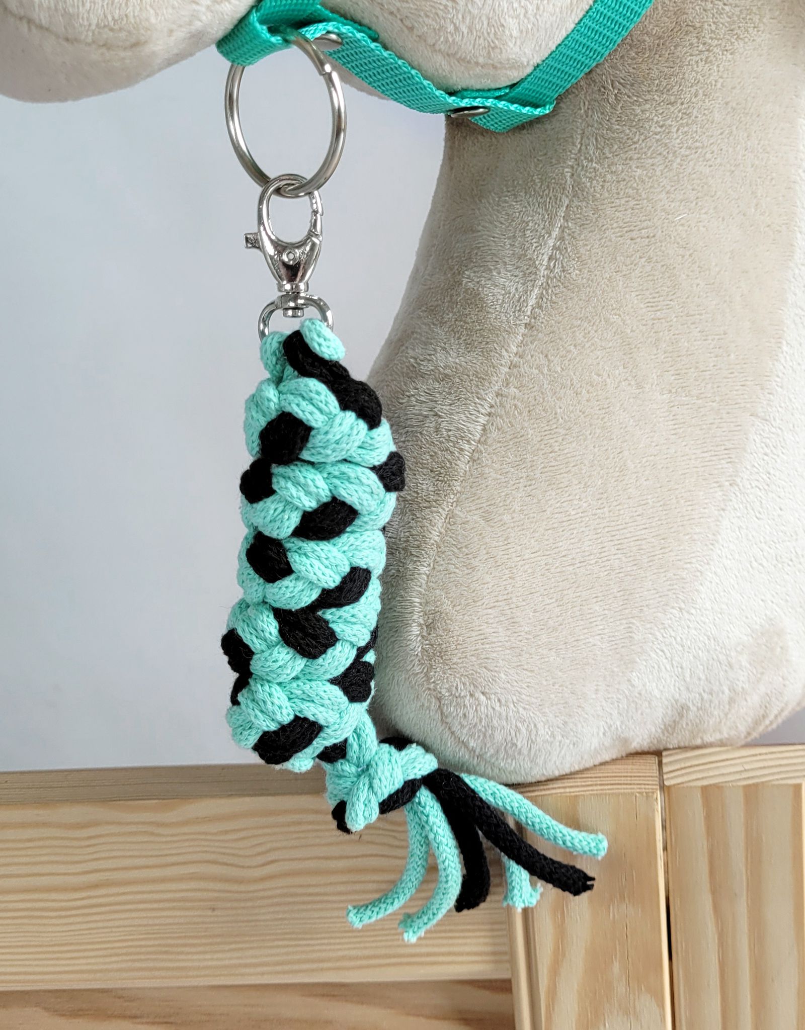Anbindestrick für Steckenpferd aus doppelt geflochtener Kordel - schwarz-minzeAnbindestrick für Steckenpferd aus doppelt geflochtener Kordel - schwarz-minzeAnbindestrick für Steckenpferd aus doppelt geflochtener Kordel - schwarz-minze
