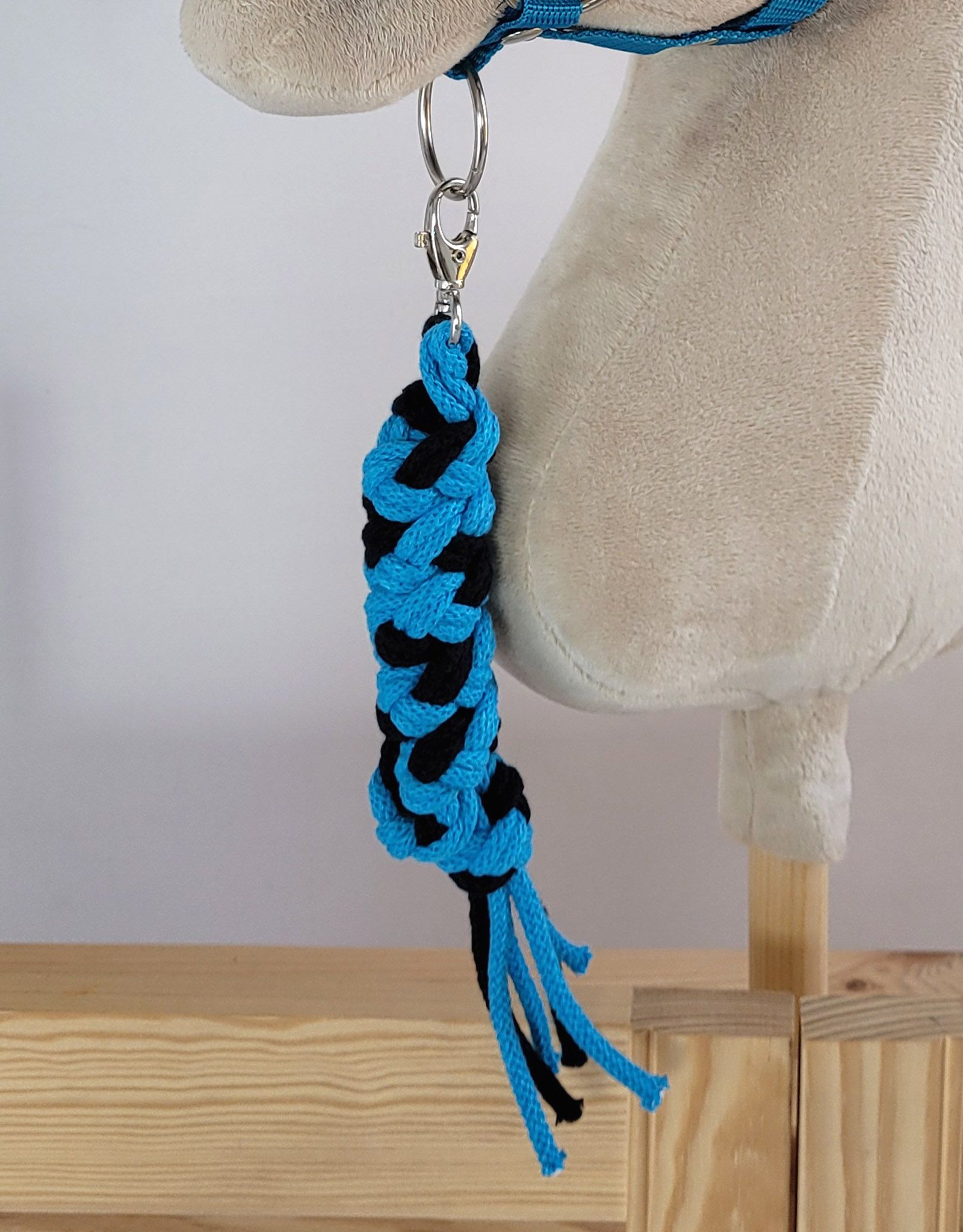 Anbindestrick für Steckenpferd aus doppelt geflochtener Kordel - schwarz- türkisAnbindestrick für Steckenpferd aus doppelt geflochtener Kordel - schwarz- türkis