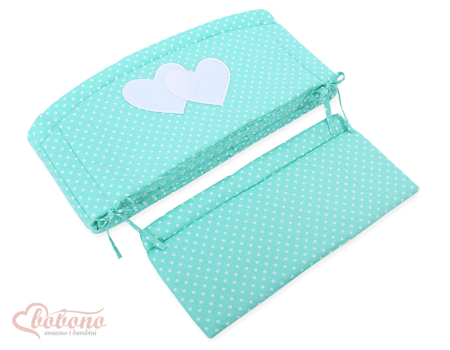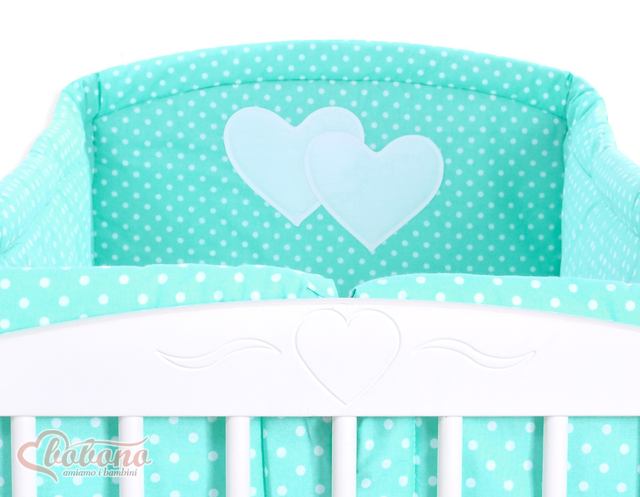 Für Kinderbett 60x120cm oder 70x140cm. Minze-Punktmuster Herzen Hängende XXL- Babybett Bettumrandung