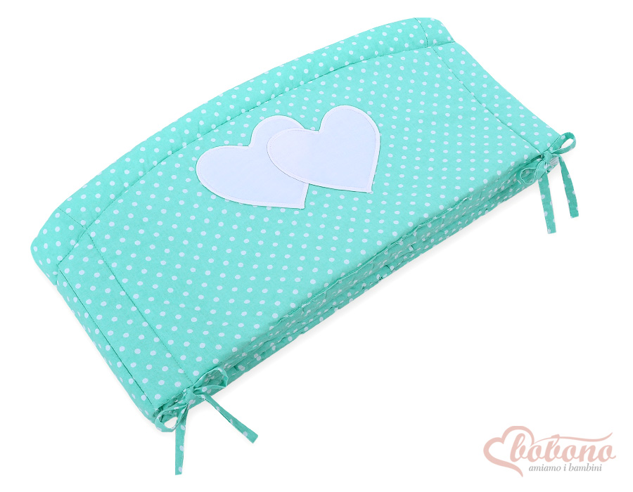 Bettumrandung Kinderbett XXL- Hängende Herzen Minze-Punktmuster Ein universal, atmungsaktiver Kopfschutz XXL für Kinderbett. Schafft mit der passenden Bettwäsche eine behagliche Schlafhöhle.