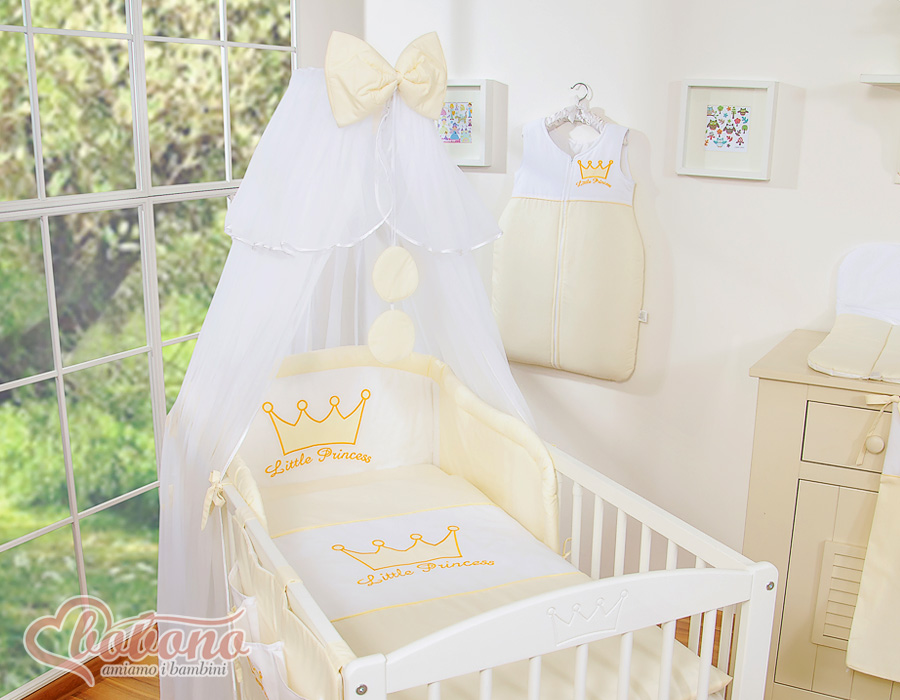 Stubenwagen » Bettwäsche für Babys » Bettwäsche für Babybett Kollektion LITTLE PRINCE / PRINCESS » Bettwäsche Sets für Babybett 140cm » Bettwäsche Set 11-tlg mit Moskitonetz » Baby Bettwäsche Set 11-tlg - Little Prince/Princess creme