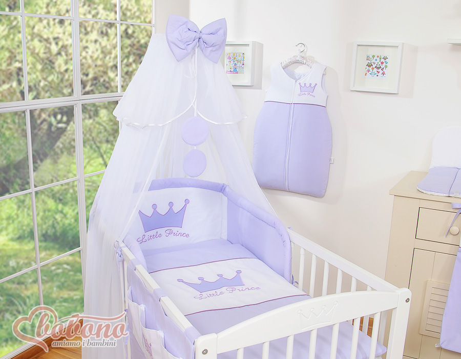 Stubenwagen » Bettwäsche für Babys » Bettwäsche für Babybett Kollektion LITTLE PRINCE / PRINCESS » Bettwäsche Sets für Babybett 140cm » Bettwäsche Set 11-tlg mit Moskitonetz » Baby Bettwäsche Set 11-tlg - Little Prince/Princess lila