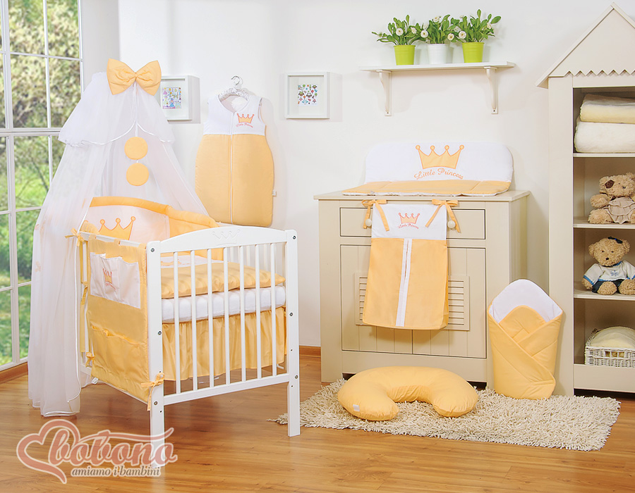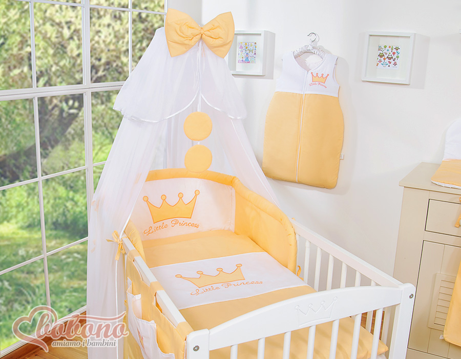 Stubenwagen » Bettwäsche für Babys » Bettwäsche für Babybett Kollektion LITTLE PRINCE / PRINCESS » Bettwäsche Sets für Babybett 140cm » Bettwäsche Set 11-tlg mit Moskitonetz » Baby Bettwäsche Set 11-tlg - Little Prince/Princess pfirsich