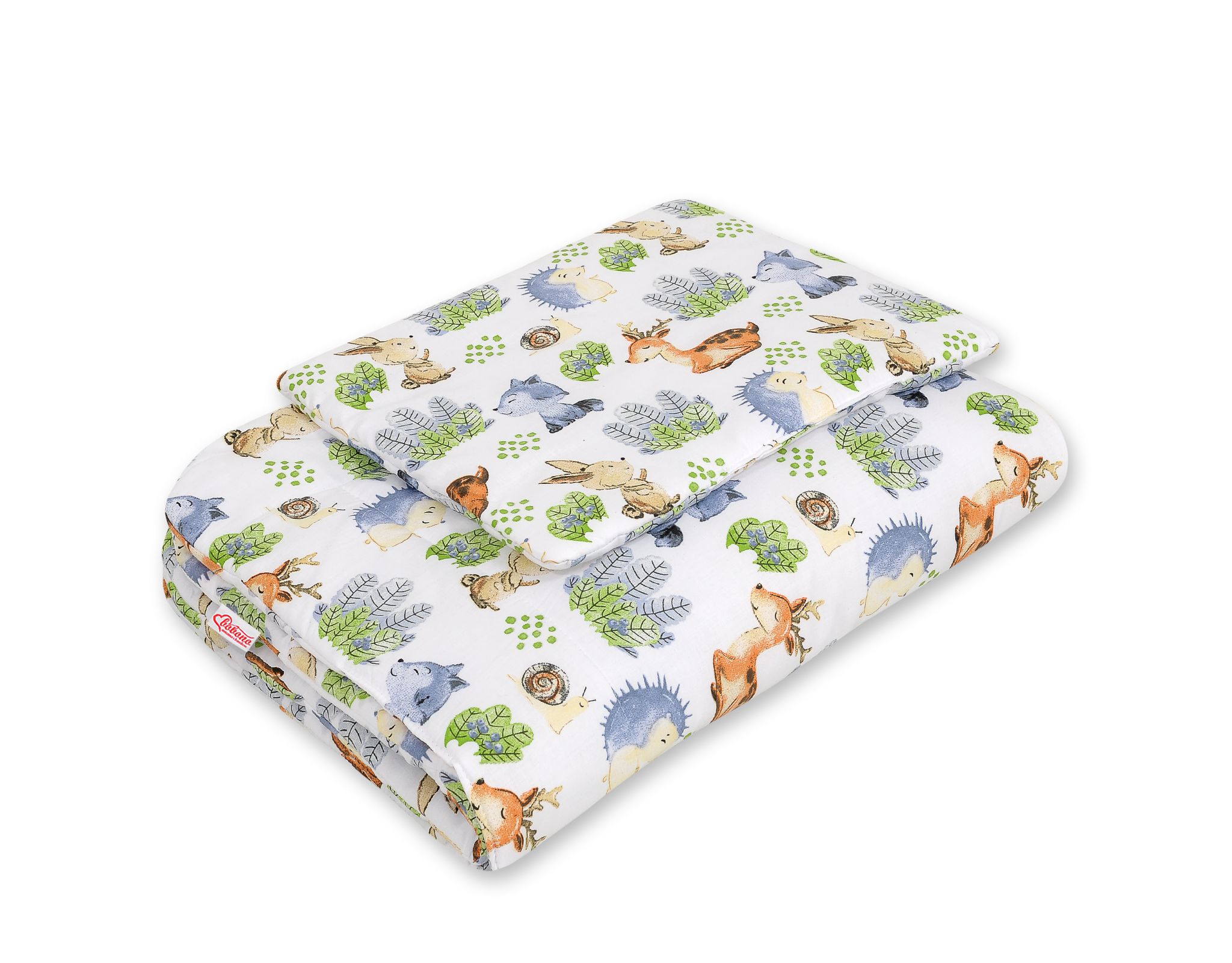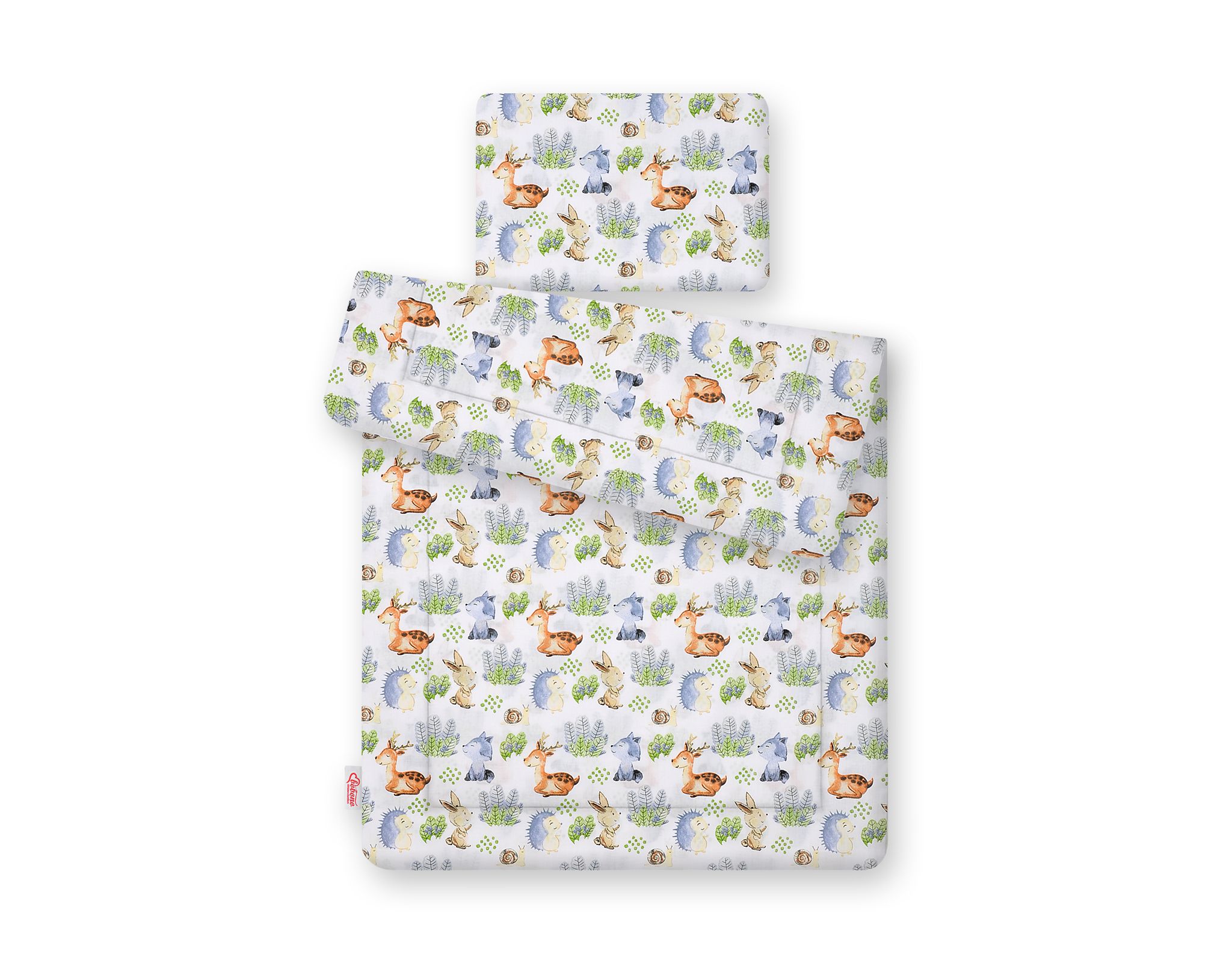 Das ganze Set ist maschinenwaschbar, trocknet schnell und verformt sich nicht; Die Maße sind für Kinderwagen, Kinderbett, Wiege oder Autositz geeignet, Das Kind kann leicht und fest eingewickelt werden: Kissen ca. 32x39 cm, Steppdecke ca. 75x100 cm. Waldabenteuer 75x100m Bettwäsche