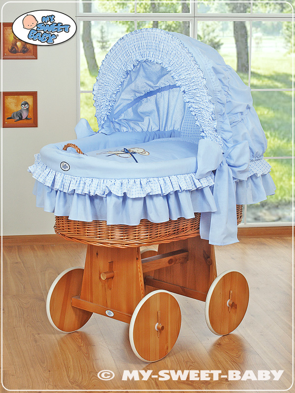 Baby Bollerwagen Baby mit Haube - Bär mit Schleife blau Eine ausgezeichnete Lösung für kleine Wohnungen oder Haus. Leise Räder ermöglichen eine einfache Einstellung des Korbs. Dank dessen ist das Kind immer bei dir.