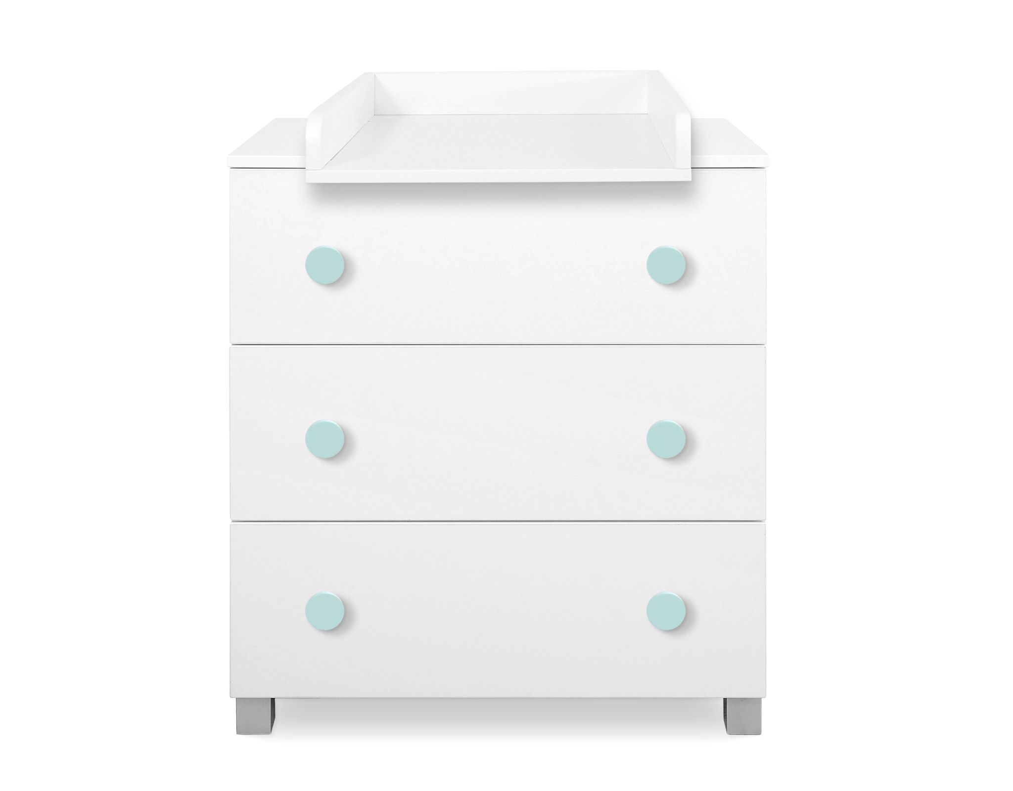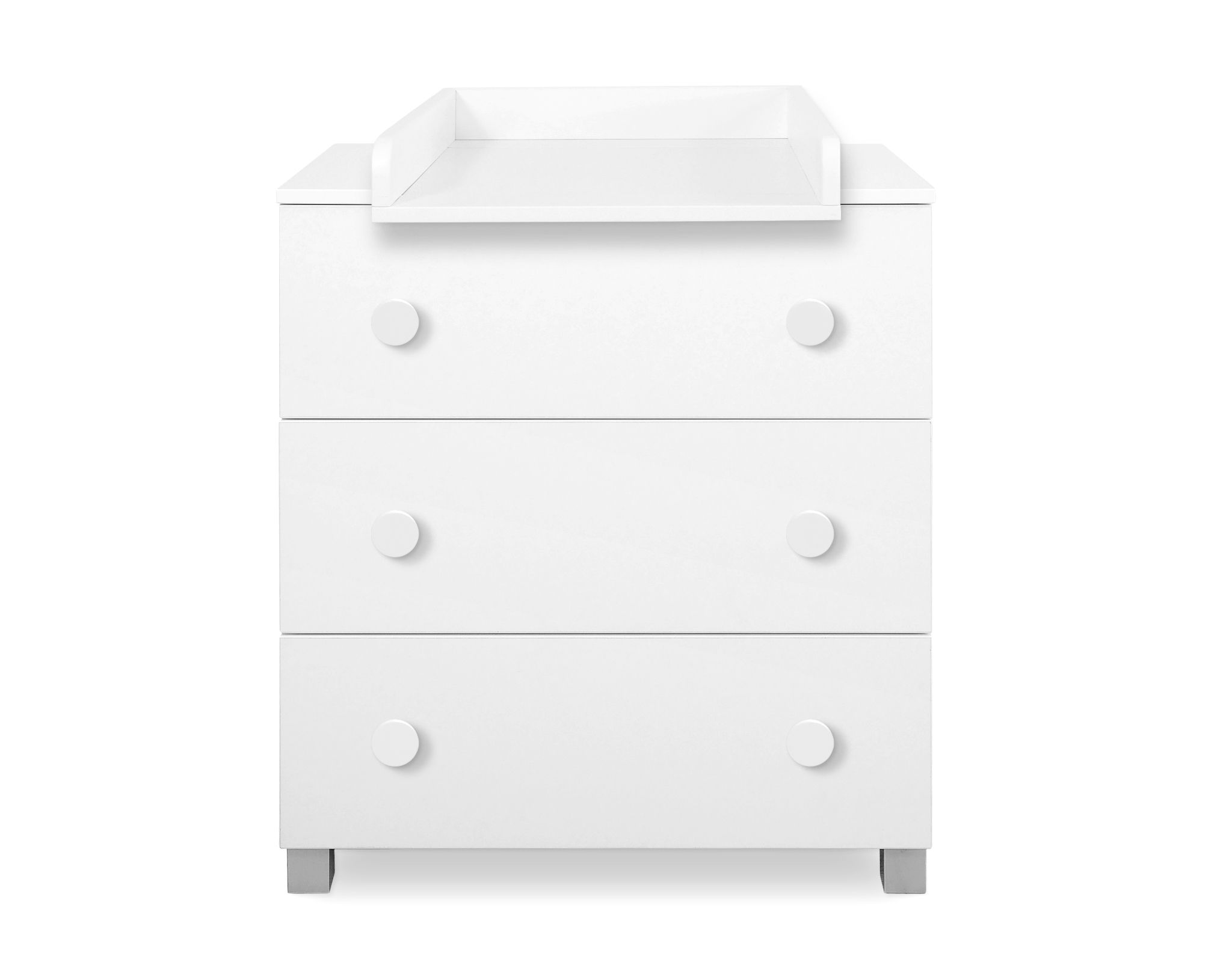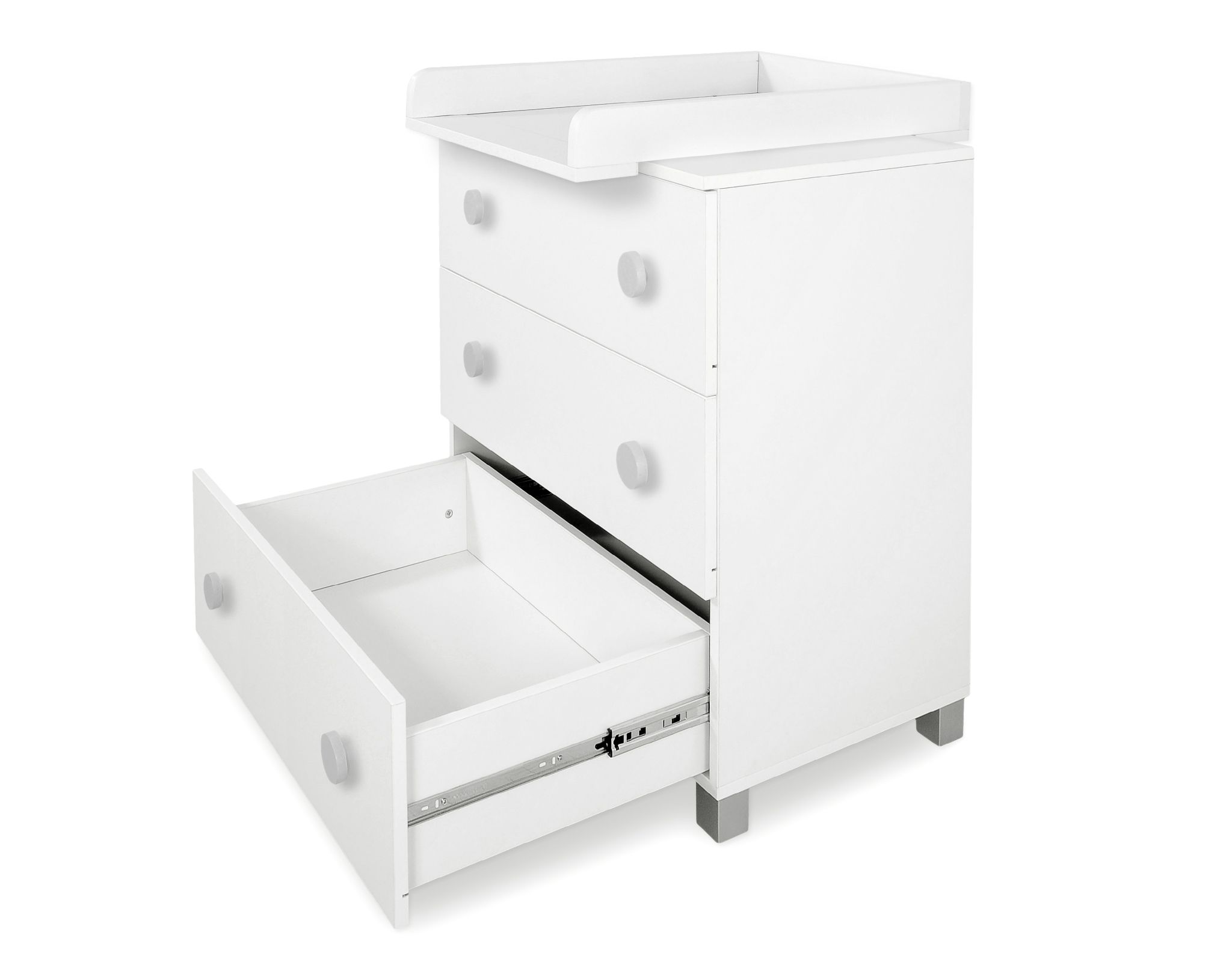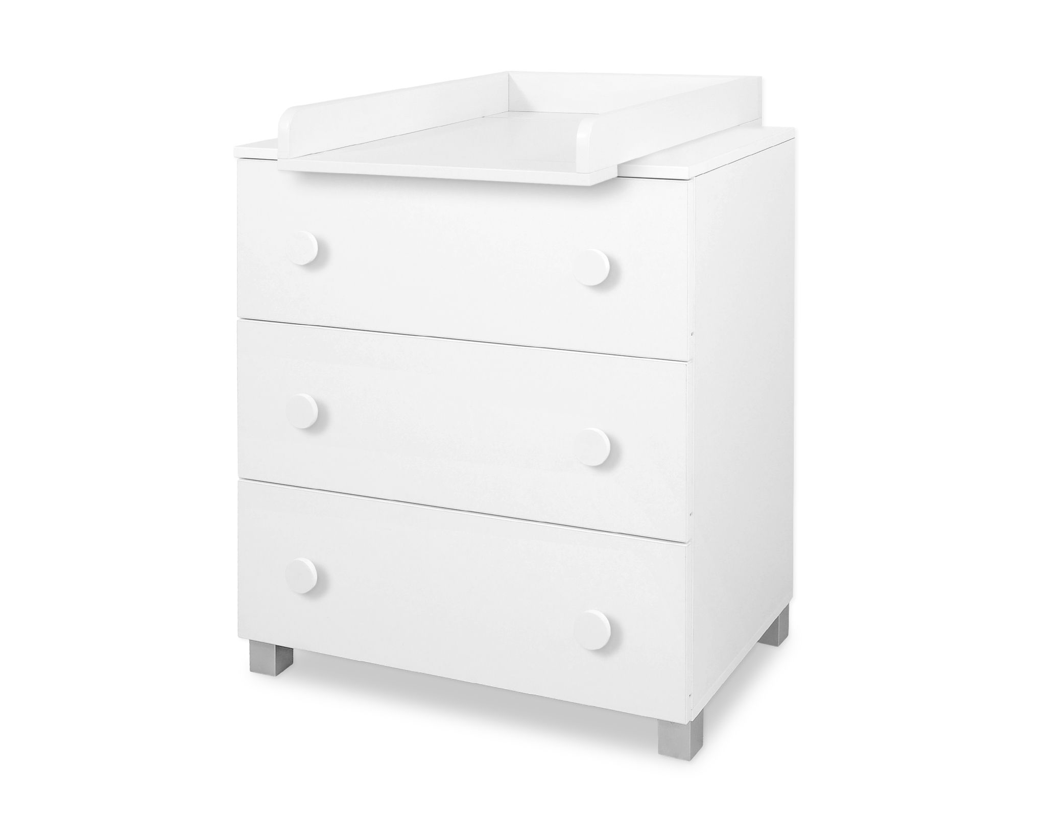 Die praktische Wickelkommode in weiß erleichtert die Babypflege. Bietet große Fläche und die perfekte Höhe zum Wickeln. In den Schubladen findet alles Platz, was zum Wickeln benötigt wird und die Hände bleiben frei für dein Kind. Die drei großen Schubladen bieten viel Stauraum für Kleidung, Pflegemittel und Windeln die zur täglichen Babypflege benötigt werden. Dank der Kugelführungen ist der Vollauszug der Schublade möglich.
