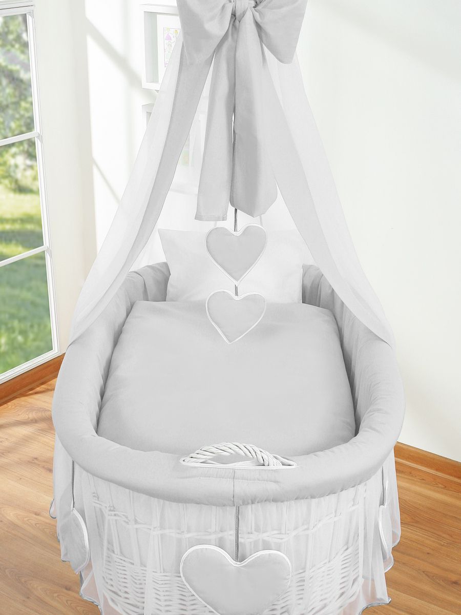 Baby Stubenwagen mit Himmel - Amelie grau Ein wunderschöner handgemachter Stubenwagen, der ein gemütliches, Nest bildet. Weiße Farbe von Korb und Holz. DER GRÖßTE WAGEN AUF DEM MARKT!