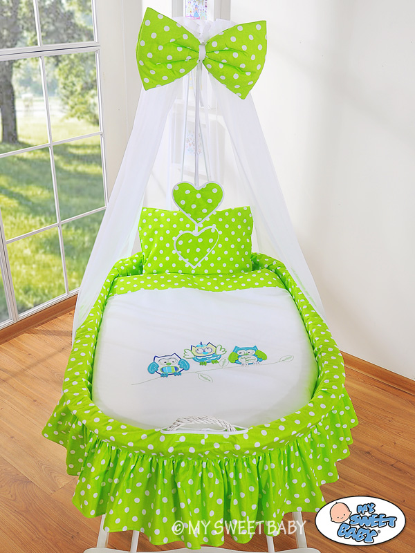 Baby Stubenwagen mit Himmel - Eulen Bigi Zibi & Adele grün