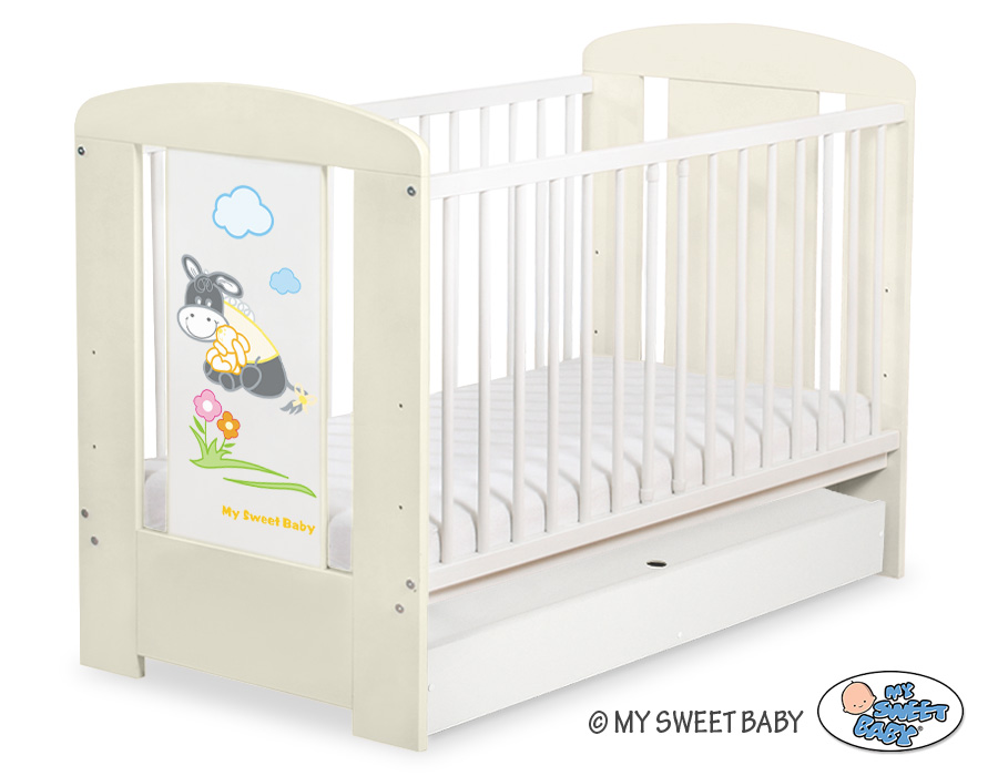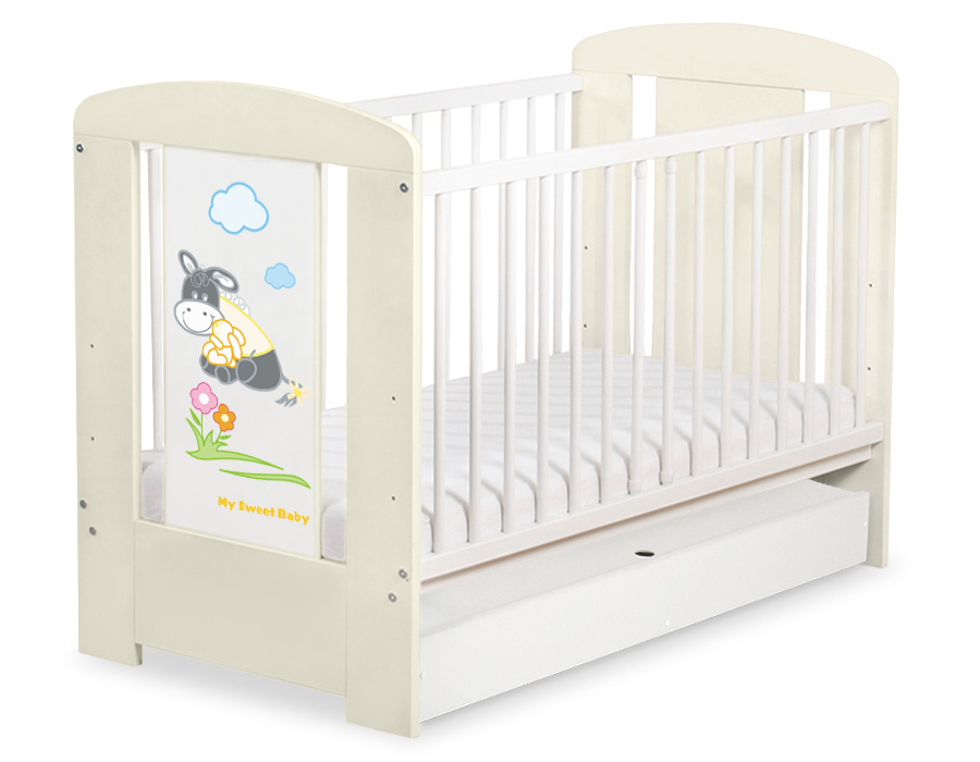 Stubenwagen » Babybett 60x120 cm » Babybetten 120x60cm mit Schublade » Babybett mit Schublade 60x120 Esel Luca » Babybett 120x60cm Esel Luca mit Schublade STANDARD