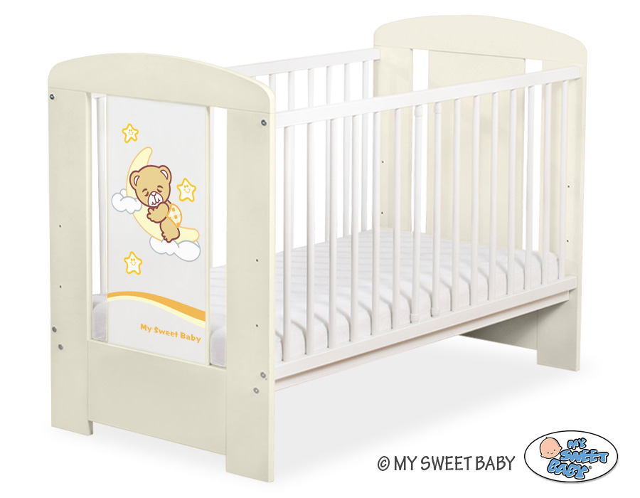 Stubenwagen » Babybett 60x120 cm » Babybett 60x120 Gute Nacht mit Matratze » Babybett 120x60cm Gute Nacht Creme