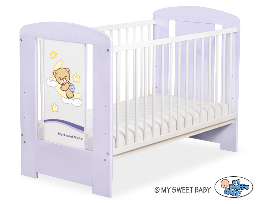 Stubenwagen » Babybett 60x120 cm » Babybett 60x120 Gute Nacht mit Matratze » Babybett 120x60cm Gute Nacht Lila