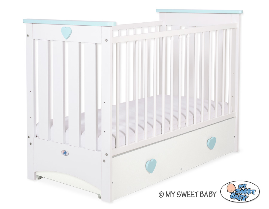 Stubenwagen » Babybett 60x120 cm » Babybetten 120x60cm mit Schublade » Babybett mit Schublade 60x1200 Lorenzo Weiß » Babybett 120x60cm Lorenzo III weiß/minze mit Schublade MAXI
