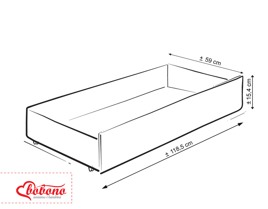 * um so viel Platz wie möglich zu nutzen ist unsere Schublade ist an den Freiraum unter dem Kinderbett optimal angepasst