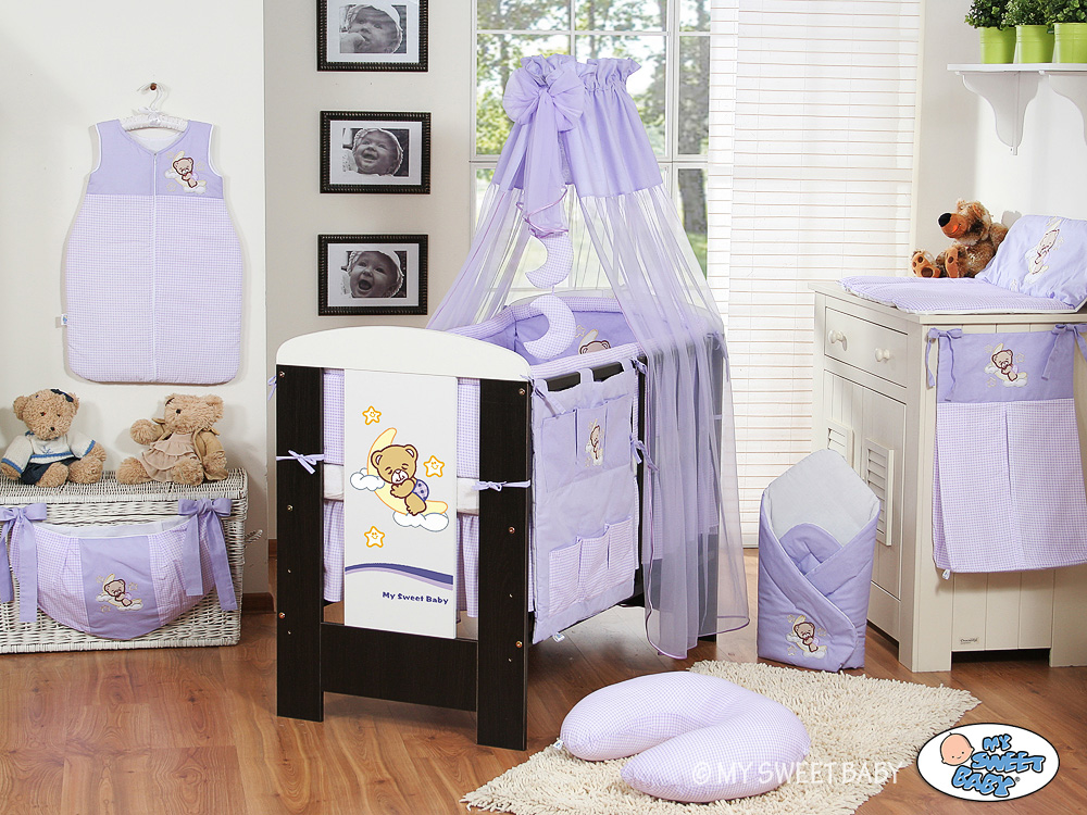 Babybett Bettwäsche Set 11-tlg mit Himmel (L70) - Gute Nacht lilaBabybett Bettwäsche Set 11-tlg mit Himmel (L70) - Gute Nacht lilaBabybett Bettwäsche Set 11-tlg mit Himmel (L70) - Gute Nacht lila