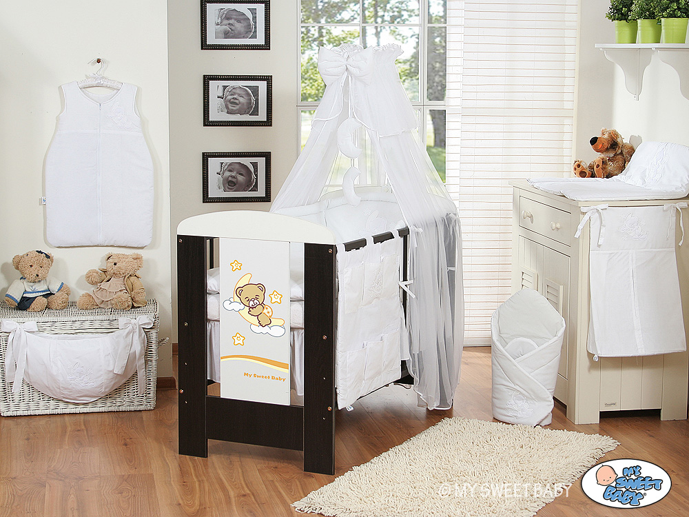 Babybett Bettwäsche Set 11-tlg mit Moskitonetz (70S) - Gute Nacht weißBabybett Bettwäsche Set 11-tlg mit Moskitonetz (70S) - Gute Nacht weiß