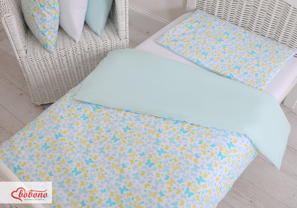 Das Bettwäsche-Set enthält keine Füllung. Schmetterlinge Blaue Mini 100x135cm Bettwäsche Babybett