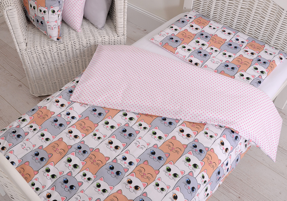 Das Bettwäsche-Set enthält keine Füllung. Katzen Rosa-grau Mini 100x135cm Bettwäsche Babybett