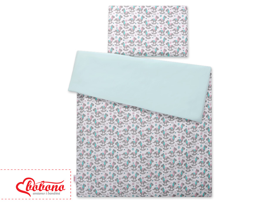 Das Bettwäsche-Set enthält keine Füllung. Schaukelpferde Mini 100x135cm Bettwäsche Babybett