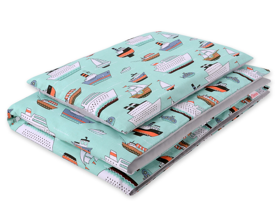 Das Bettwäsche-Set enthält keine Füllung. Minze Schiffe Mini 100x135cm Bettwäsche Babybett