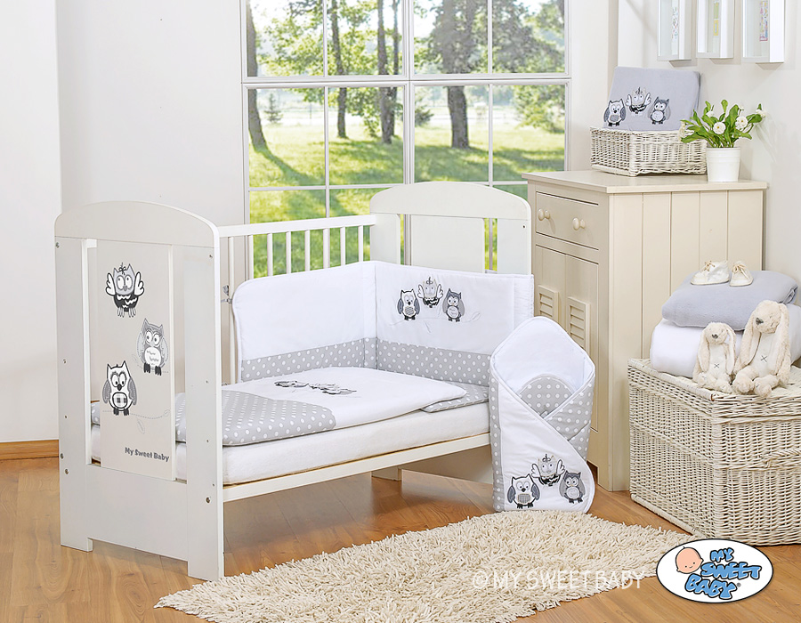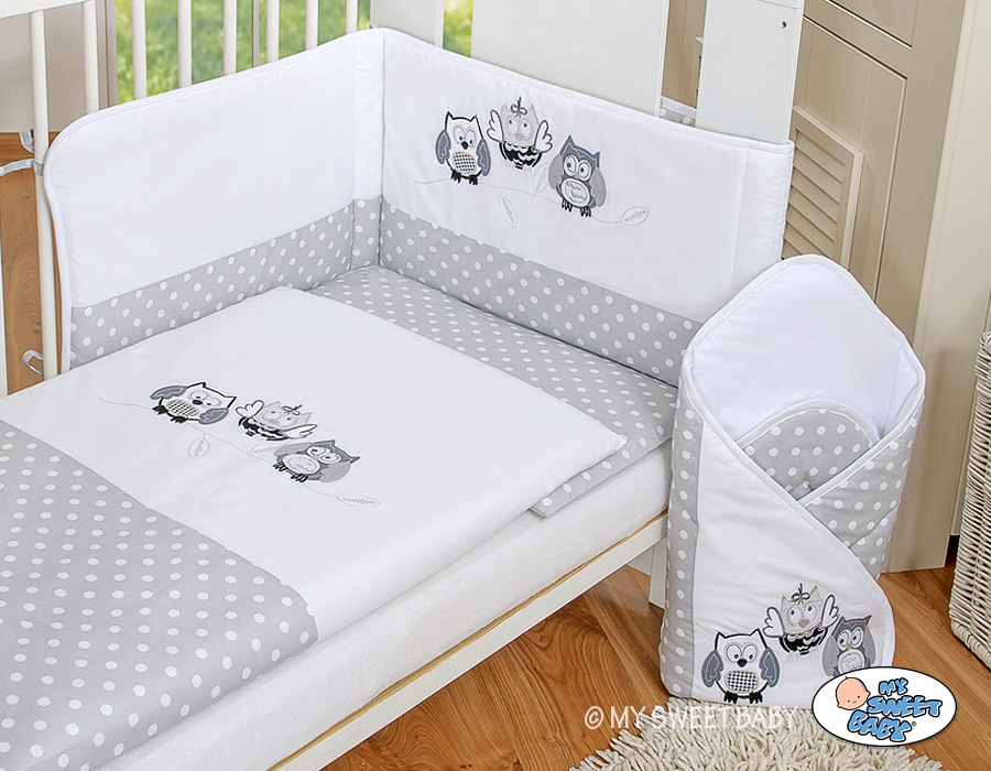 Babybett Bettwäsche Set 2-tlg - Eulen Bigi Zibi & Adele grau-schwarzBabybett Bettwäsche Set 2-tlg - Eulen Bigi Zibi & Adele grau-schwarz
