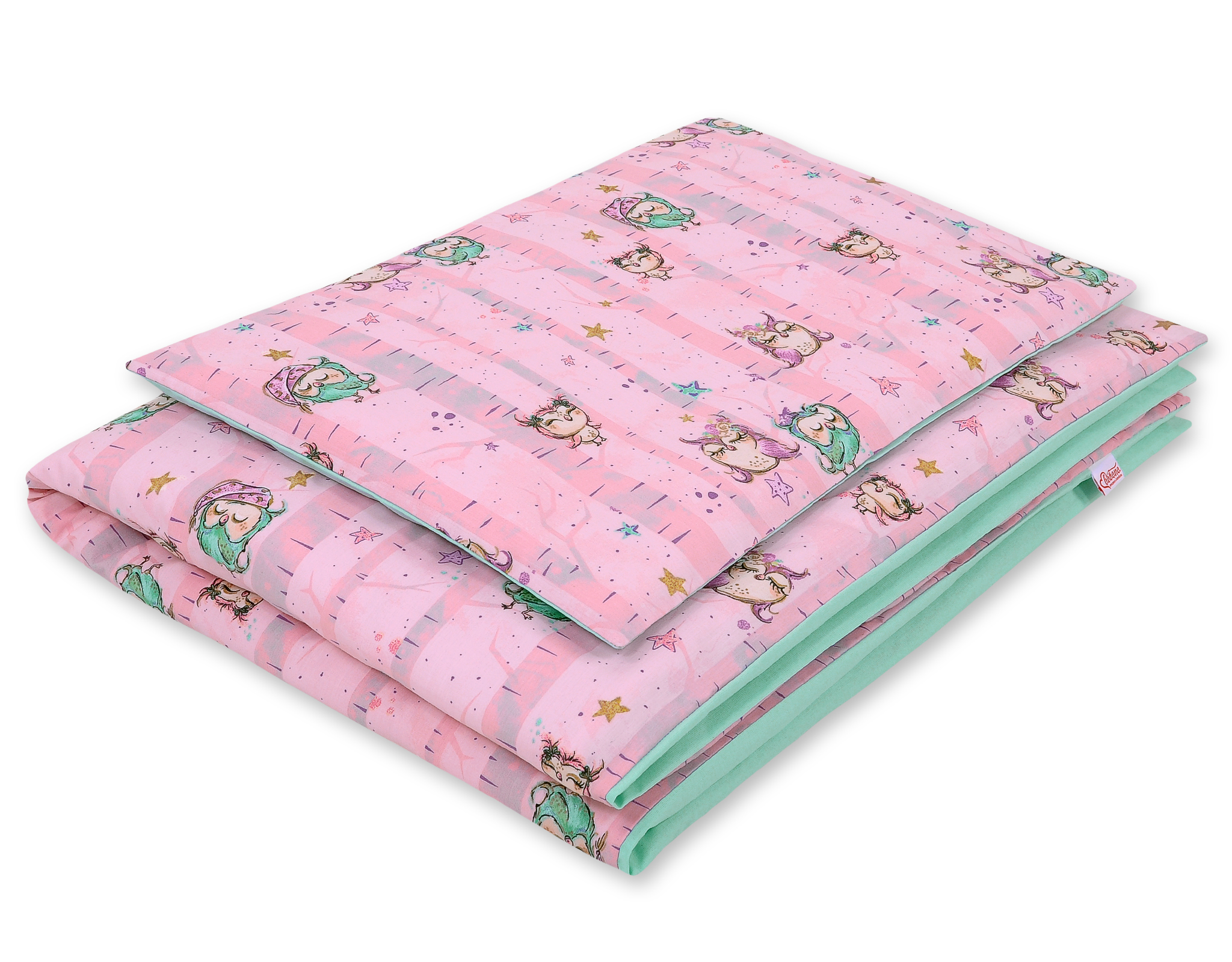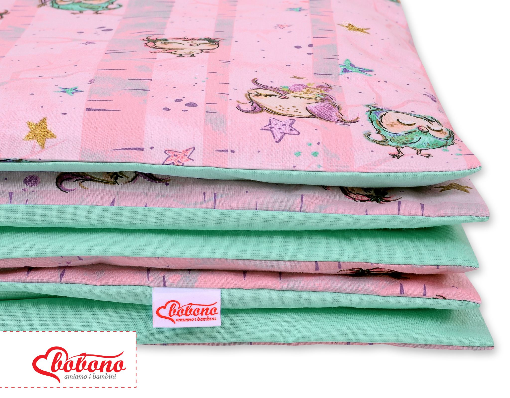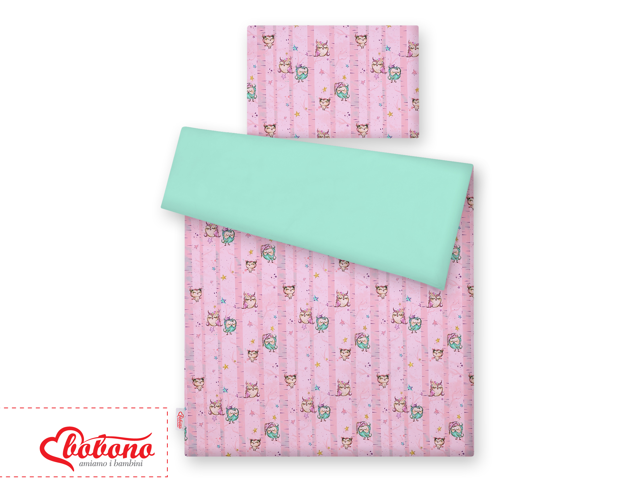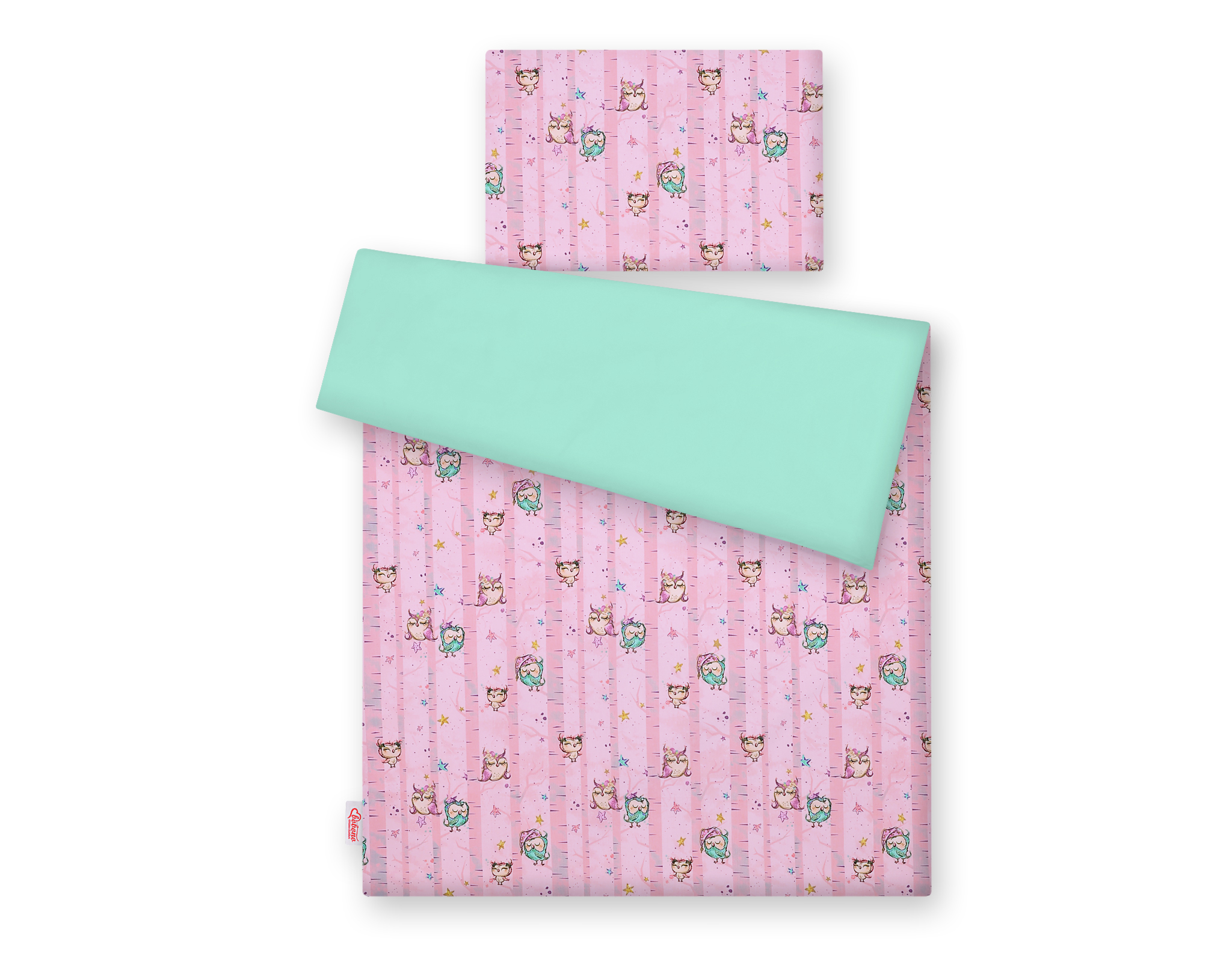 Für Kinderbett 60x120cm und 70x140cm. Rosa-minze Eulen Bettwäsche Babybett
