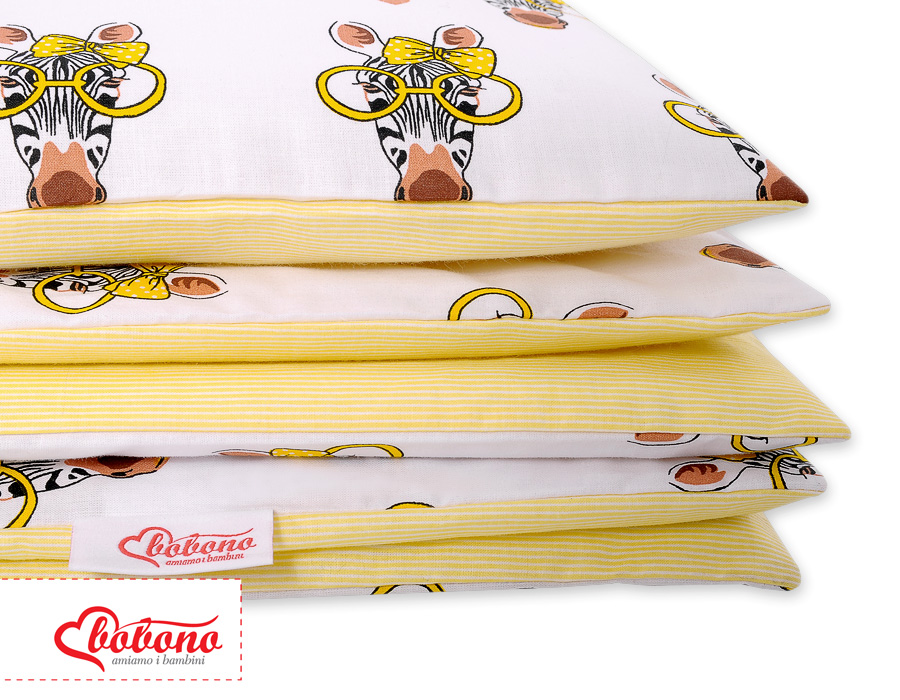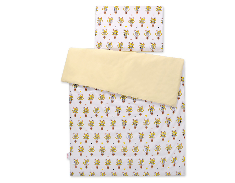 Babybett Bettwäsche Set 2-tlg - gelbe Zebras In der bunte KinderBettwäsche verbringt der kleine Sprössling eine erholsame Nacht. Hochwertig aus Baumwolle gefertigt.