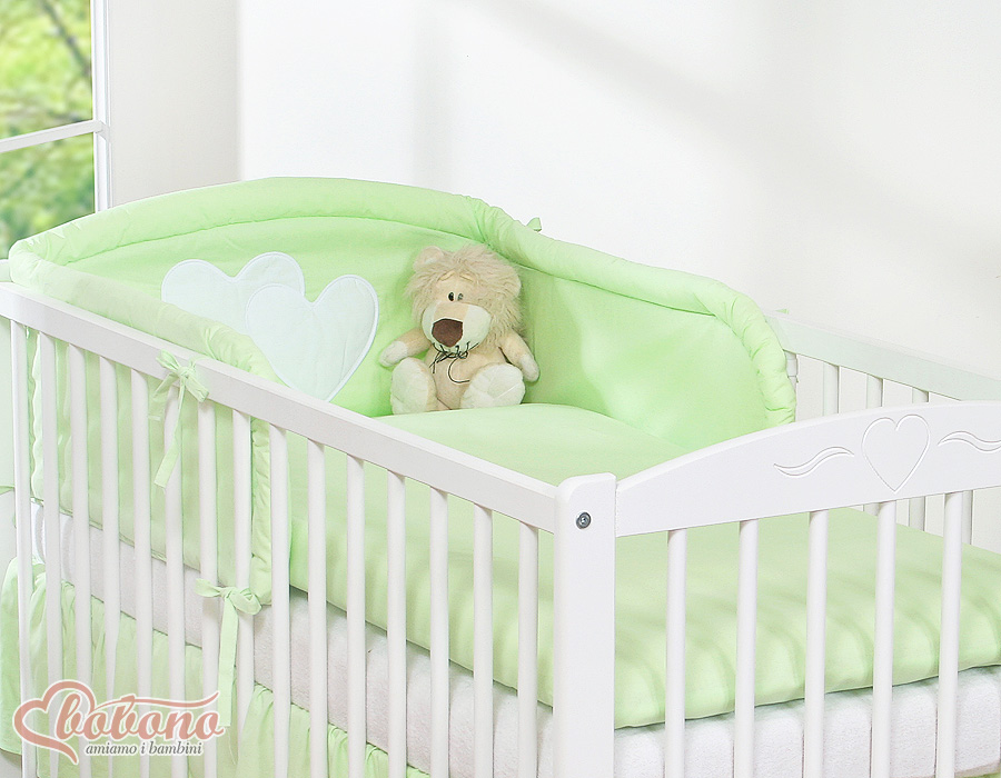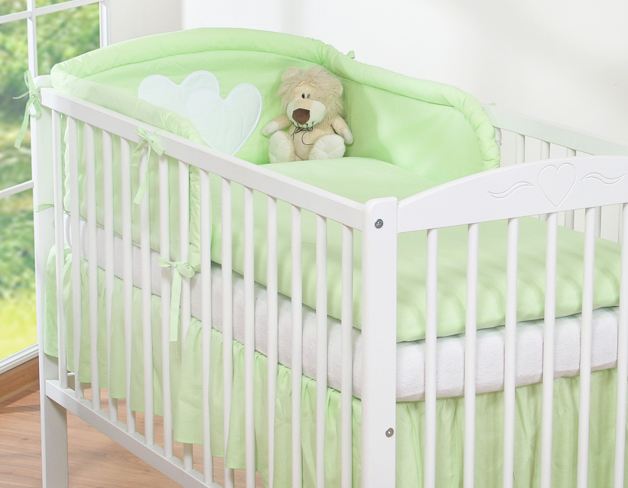 Babybett Bettwäsche Set 2-tlg - Hängende Herzen grün In der liebevoll gestalteten Bettwäsche lässt es sich herrlich schlummern. Die hautverträgliche Qualität lädt zum Träumen ein.