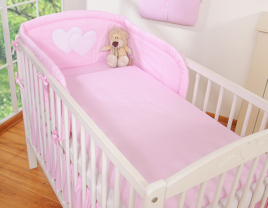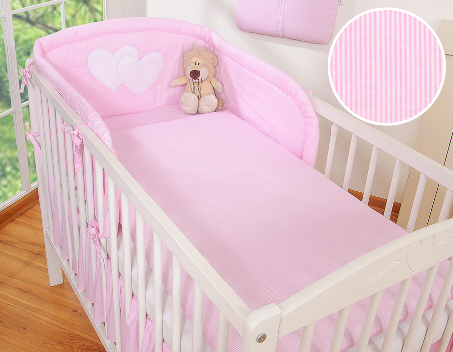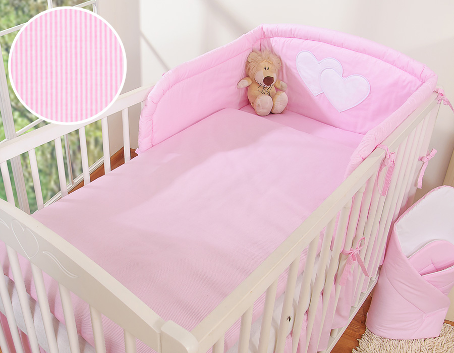 Babybett Bettwäsche Set 2-tlg - Hängende Herzen rosa gestreift In der liebevoll gestalteten Bettwäsche lässt es sich herrlich schlummern. Die hautverträgliche Qualität lädt zum Träumen ein.