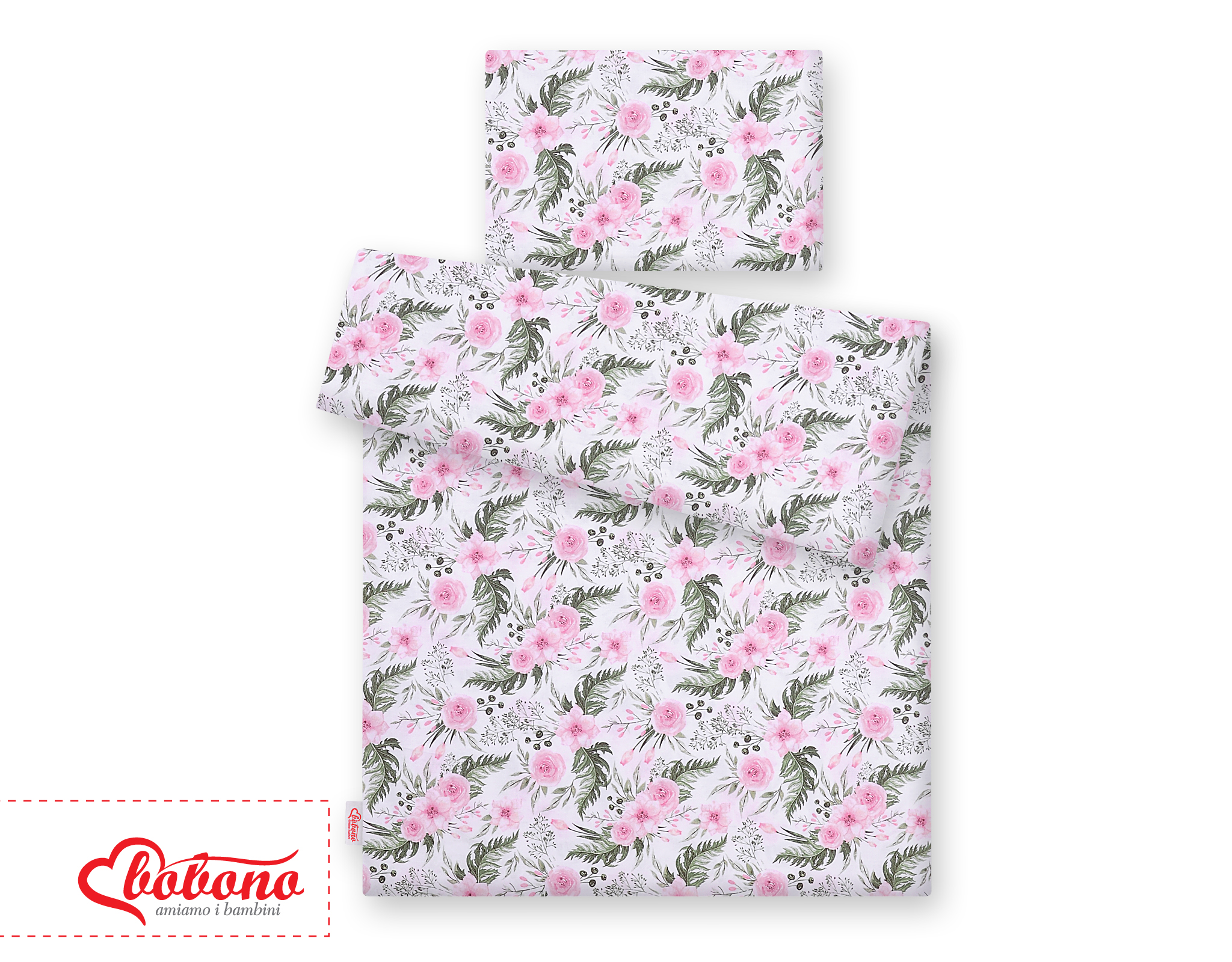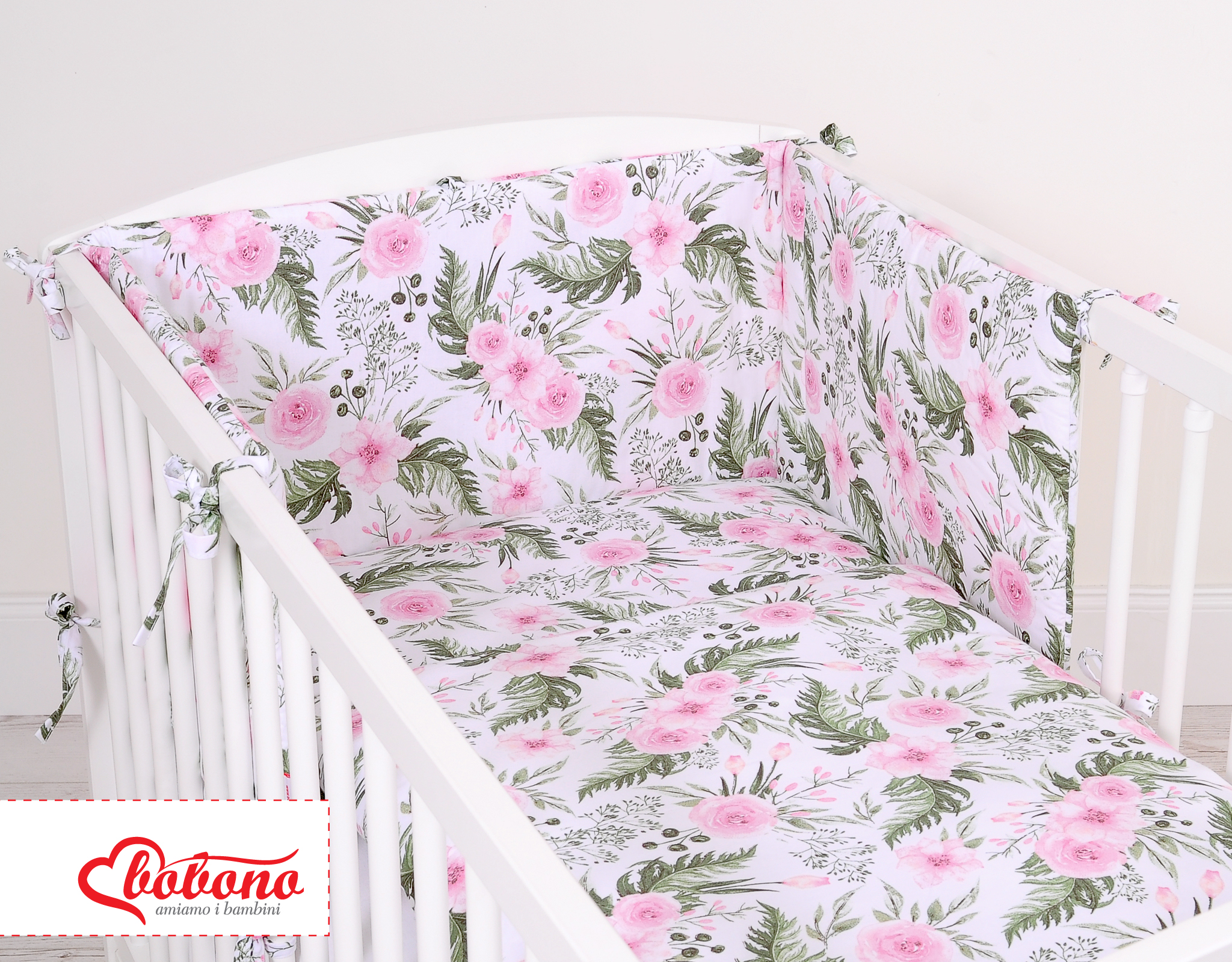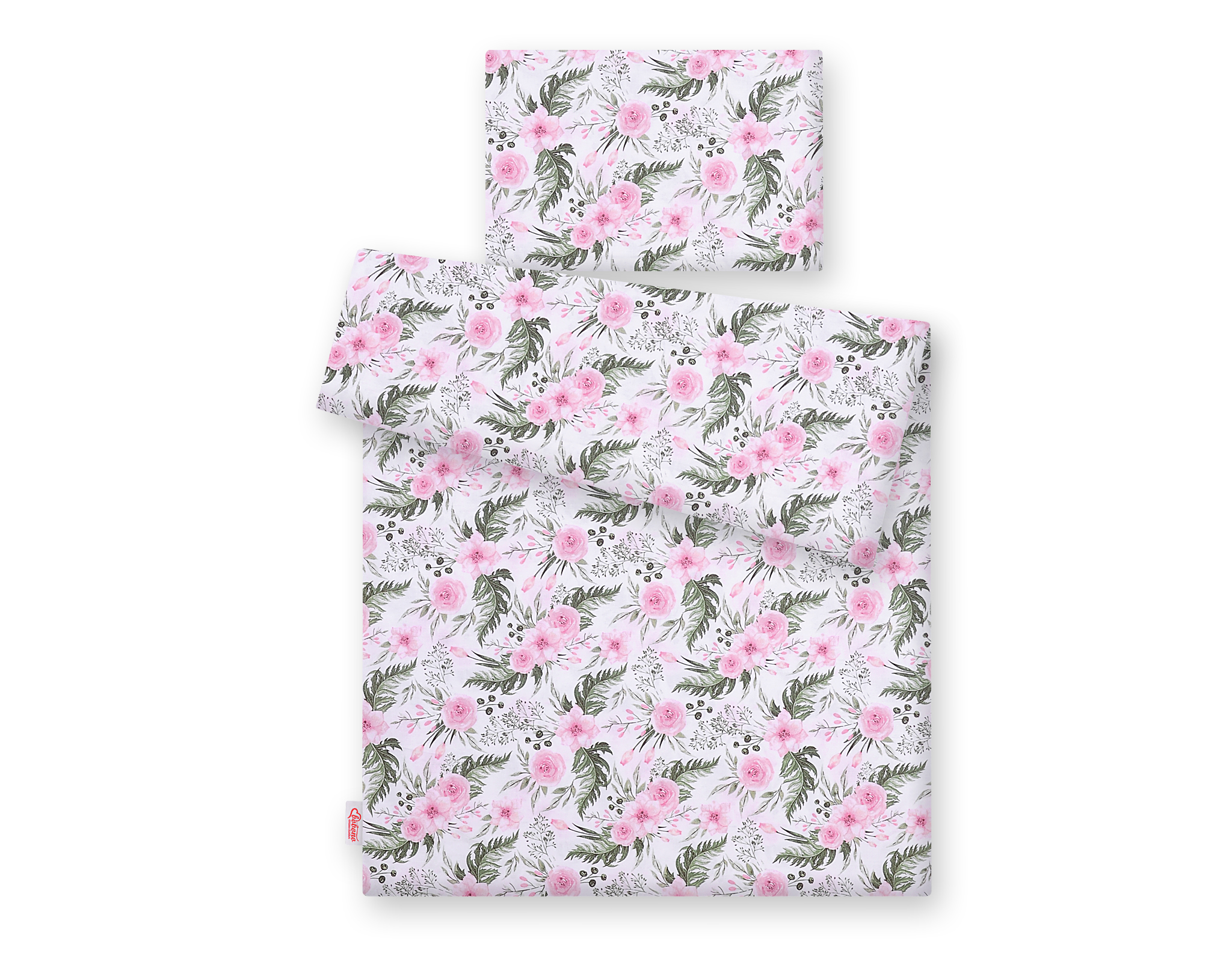 Babybett Bettwäsche Set 2-tlg - rosa Blüten In der bunte KinderBettwäsche verbringt der kleine Sprössling eine erholsame Nacht. Hochwertig aus Baumwolle gefertigt.