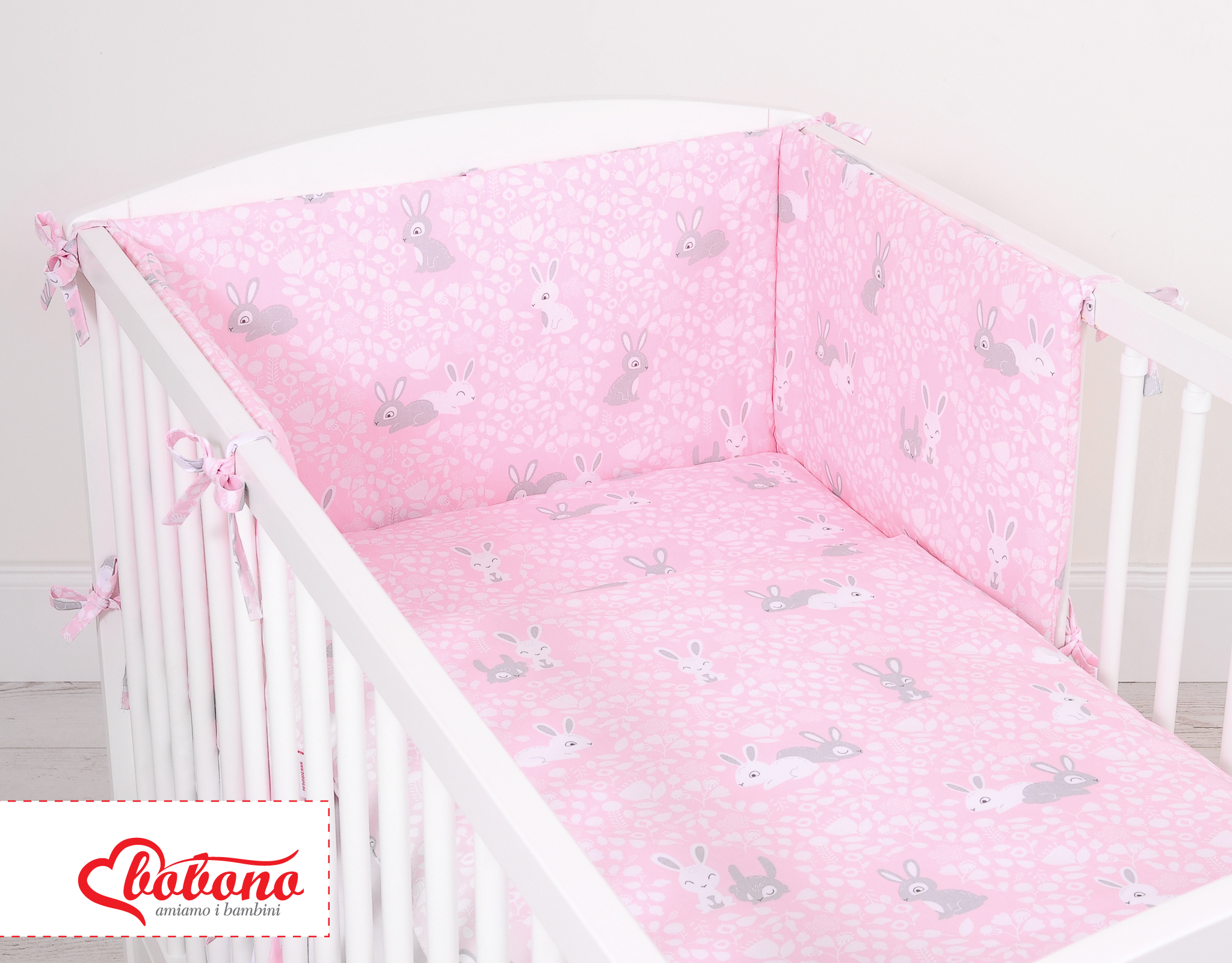 Babybett Bettwäsche Set 2-tlg - rosa Hasen In der bunte KinderBettwäsche verbringt der kleine Sprössling eine erholsame Nacht. Hochwertig aus Baumwolle gefertigt.