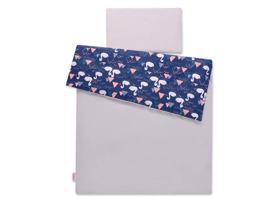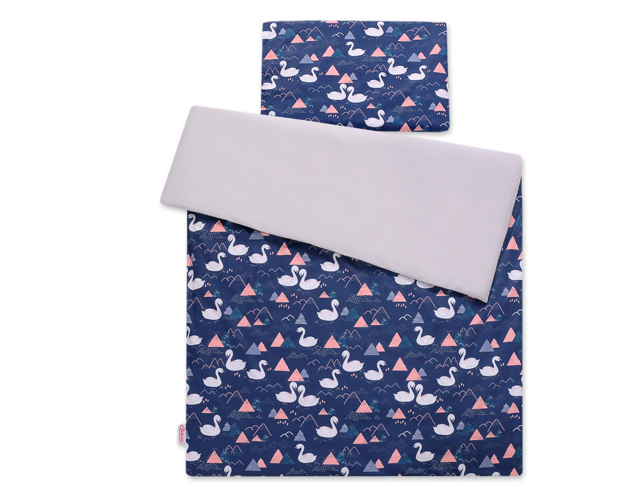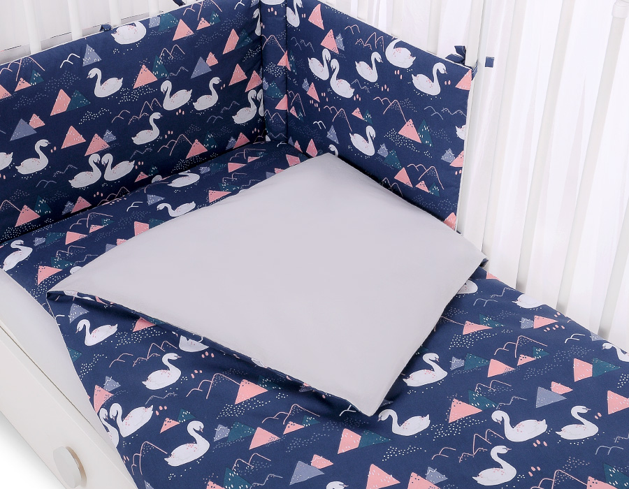 Babybett Bettwäsche Set 2-tlg - Schwäne dunkelblau In der bunte KinderBettwäsche verbringt der kleine Sprössling eine erholsame Nacht. Hochwertig aus Baumwolle gefertigt.