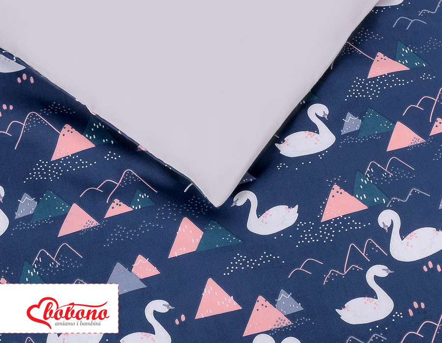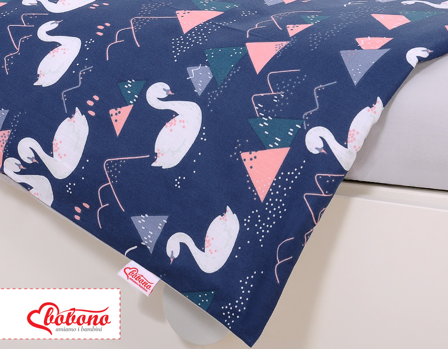 Für Kinderbett 60x120cm und 70x140cm. Dunkelblau Schwäne Bettwäsche Babybett