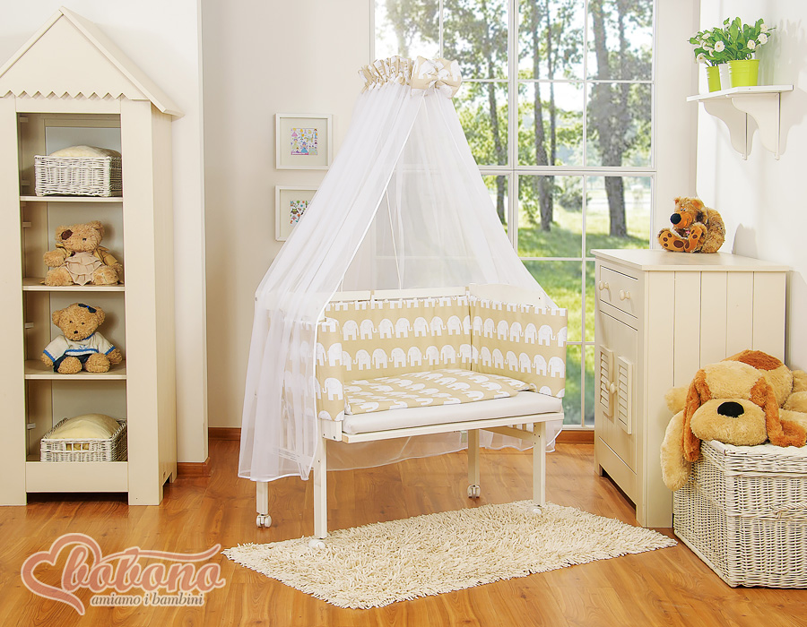 Babybett für Elternbett FABIO mit Matratze und Bettwäsche Set - Basic Elefanten beige Wir präsentieren Ihnen wunderschönes Beistellbettchen welches aus schadstofffreien Materialien angefertigt wurde. Erfüllt die gültigen EU Normen.
