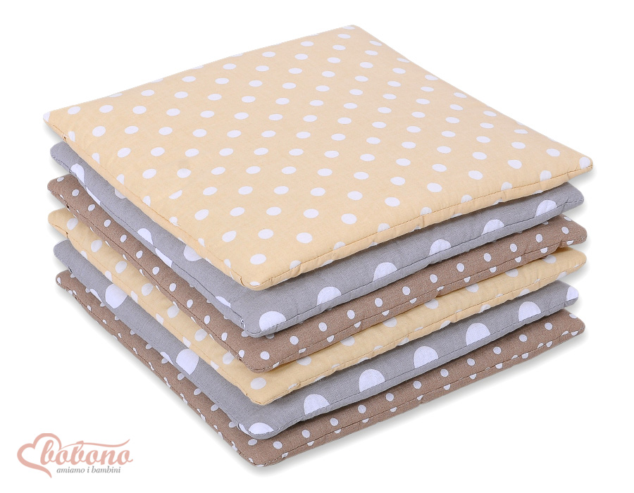 • 6 Kissen aus Baumwolle(32x32cm) mit Füllung aus Silikongewebe. Füllung und Oberstoff zusammengenäht.