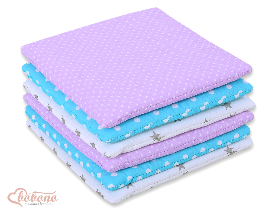 • 6 Kissen aus Baumwolle(32x32cm) mit Füllung aus Silikongewebe. Füllung und Oberstoff zusammengenäht.